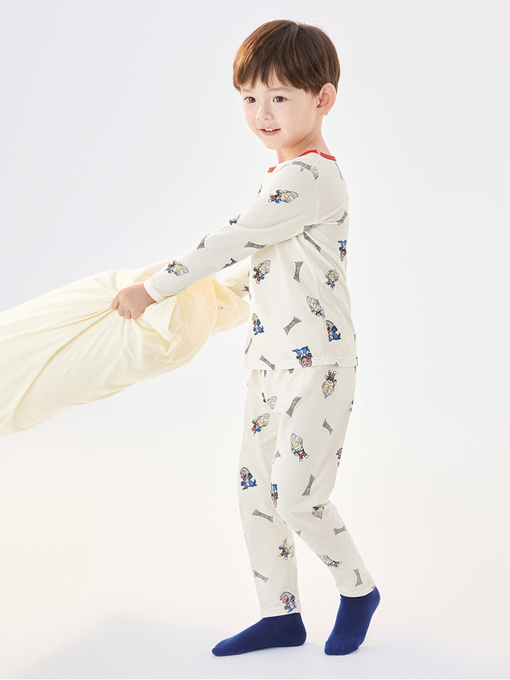 lounge set of two pieces, a long sleeves casual topdecorated with a printed pattern, comes with a rounded shape collar, and a casual pants decorated with a printed pattern, comes with a comfy elasticated waistband