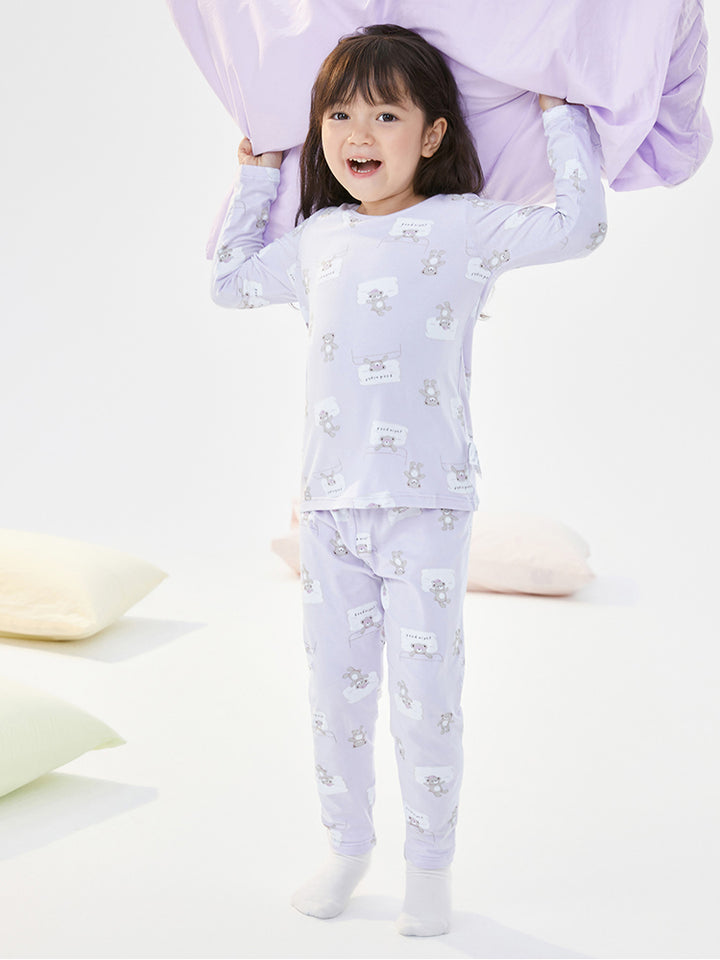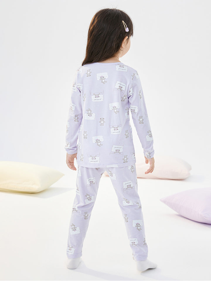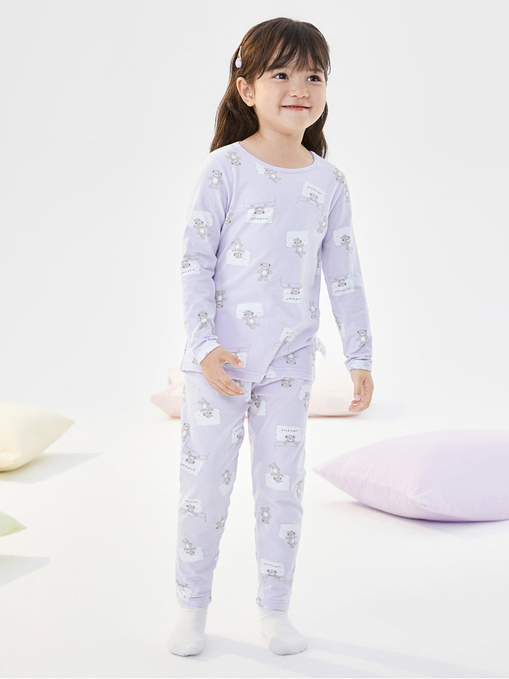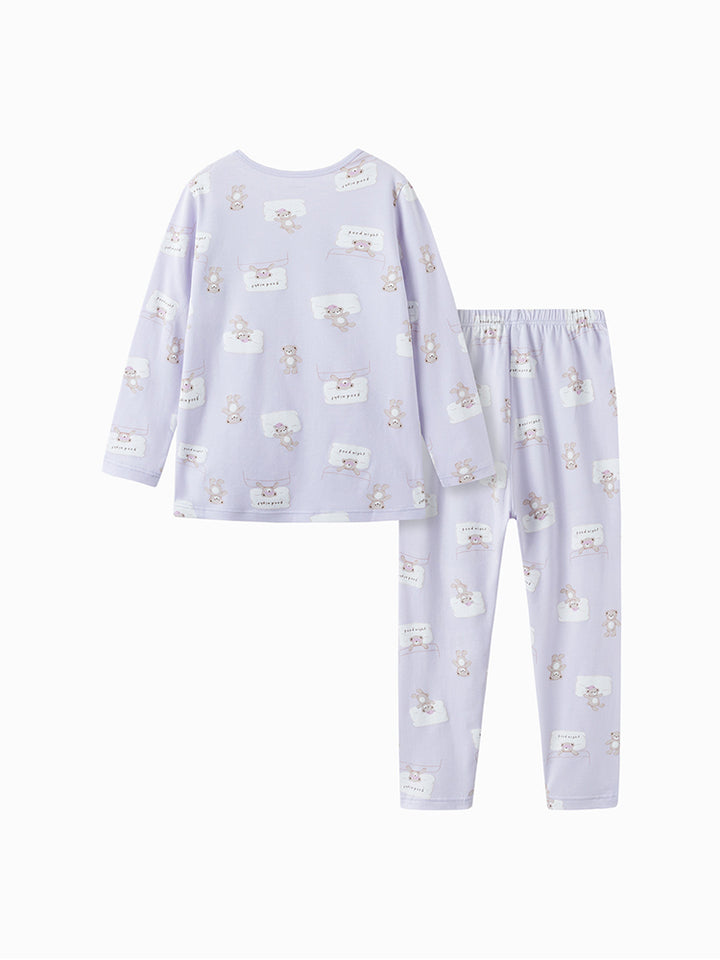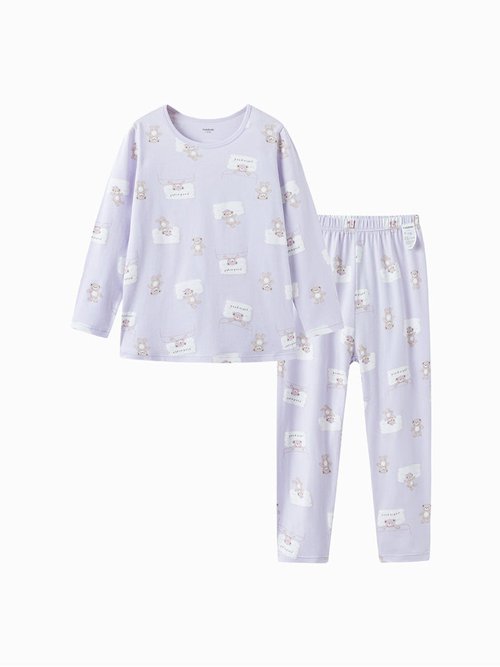 lounge set of two pieces, a long sleeves casual topdecorated with a printed pattern, comes with a rounded shape collar, and a casual pants decorated with a printed pattern, comes with a comfy elasticated waistband