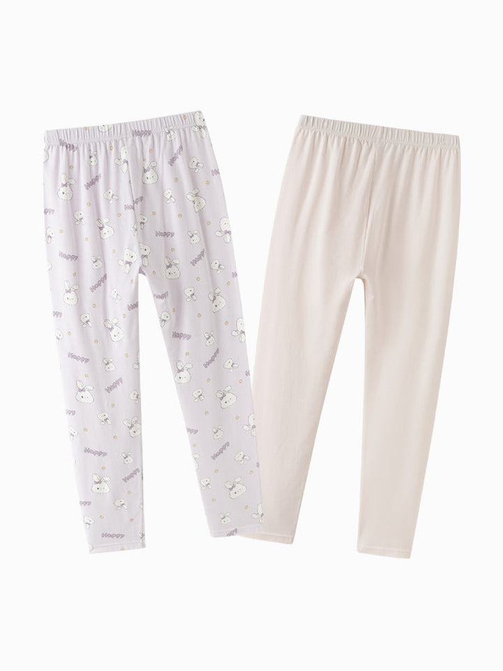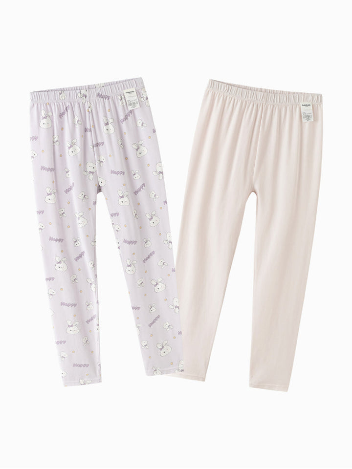 Comfortable lounge pants set including one printed pair and one solid pair, both crafted from soft, breathable fabric for relaxing at home or bedtime.