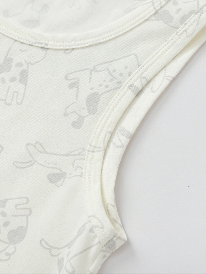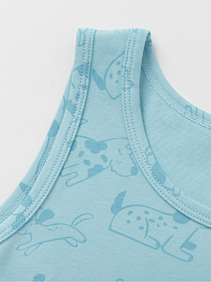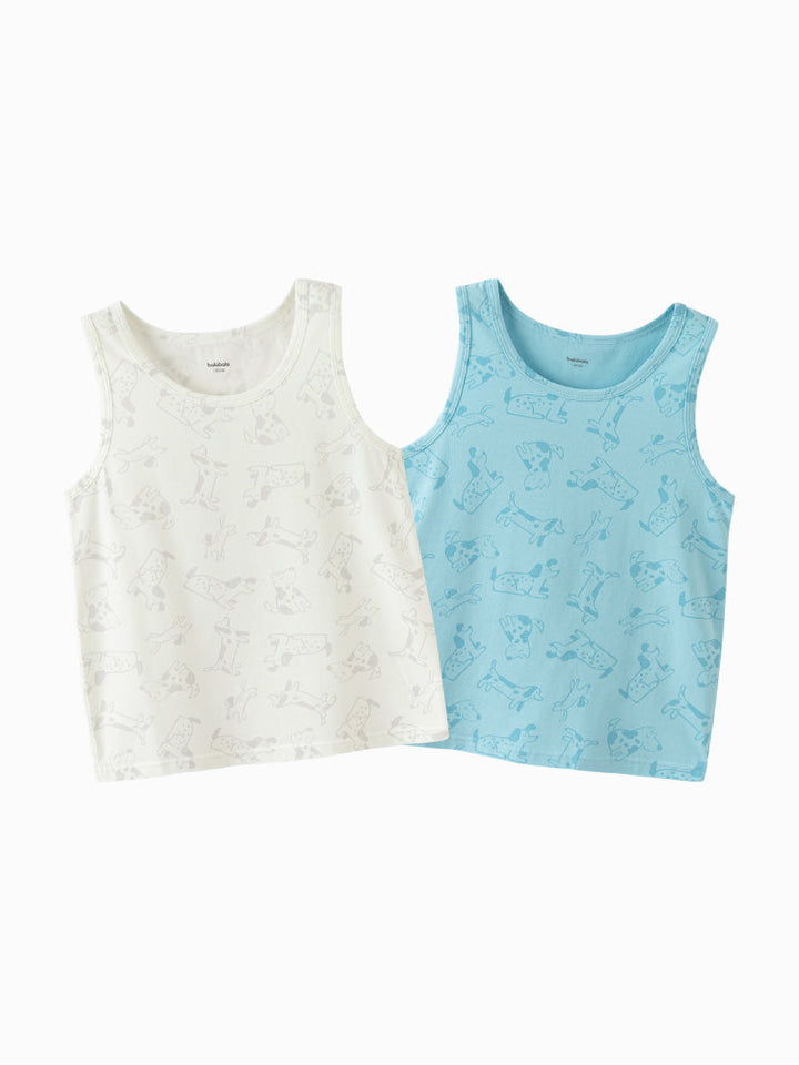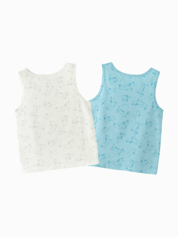 A set of two sleeveless tank tops crafted from soft, breathable cotton for all-day comfort. Designed with playful prints and solid styles, perfect for layering or wearing alone during warm days.
