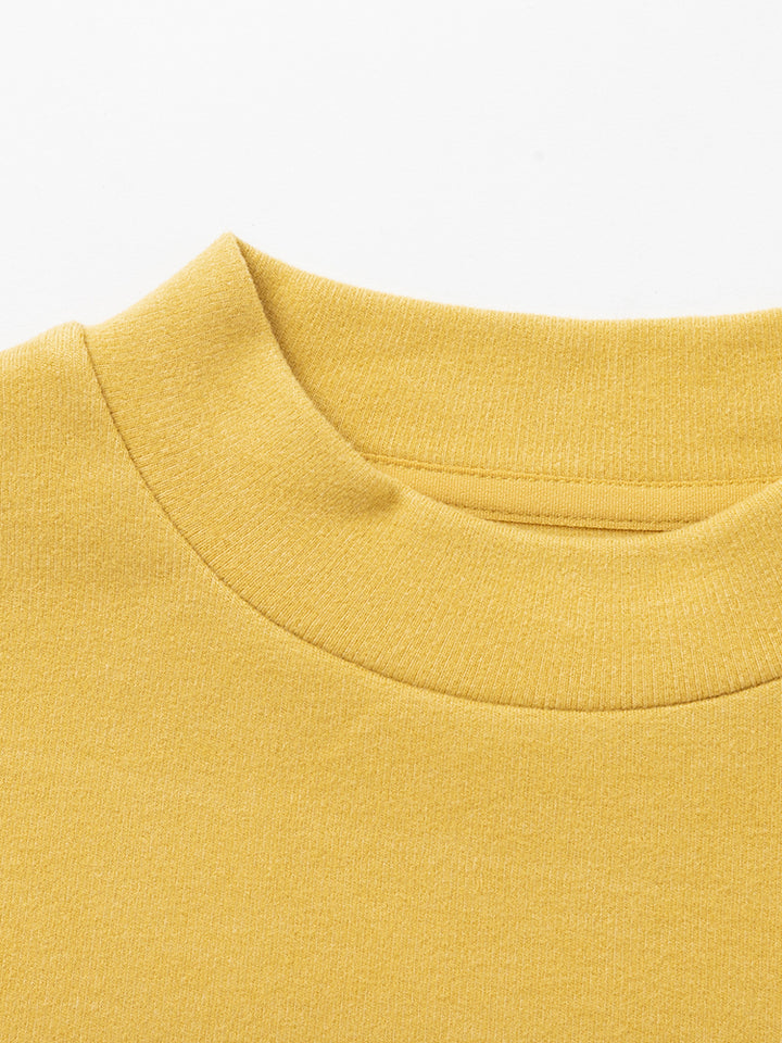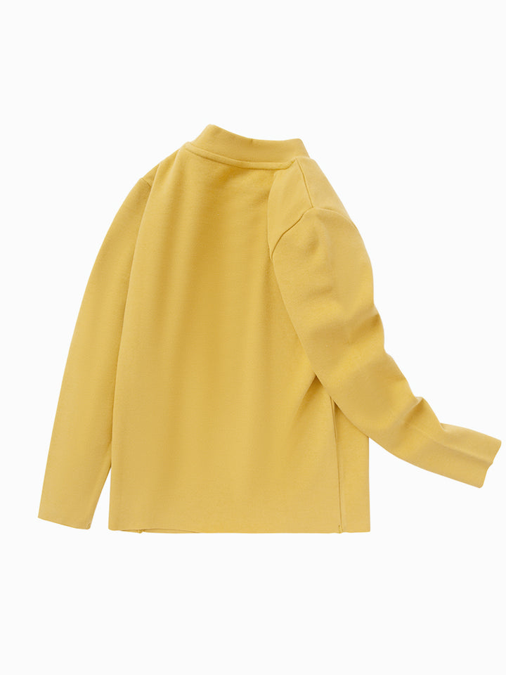 long sleeves top in a solid mono colored pattern, comes with a comfy warm yarn fabric and a rounded high collar