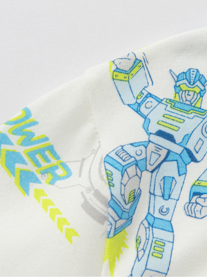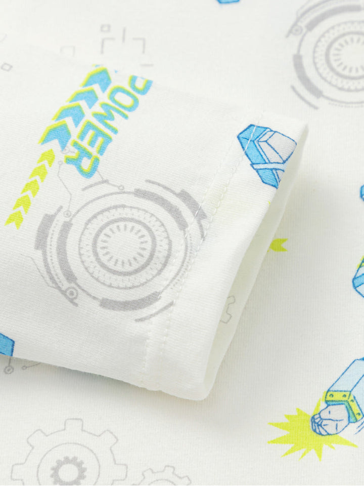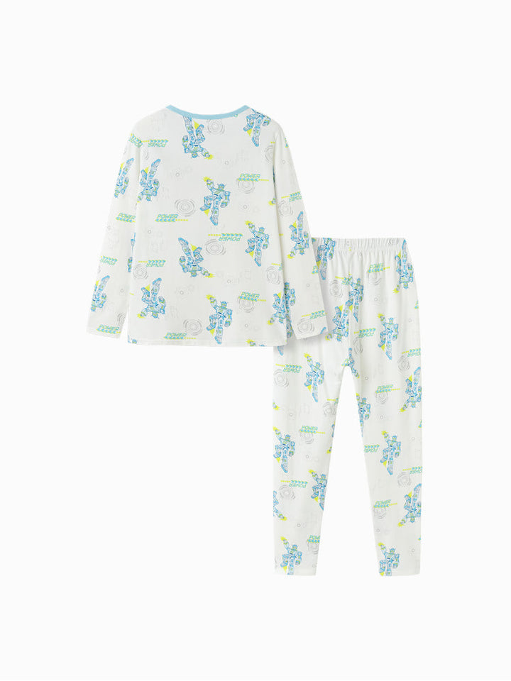 Comfortable two-piece pajama set for kids, featuring a long-sleeve top and matching pants with fun cartoon prints. Made from soft fabric for cozy nights and easy movement during sleep.