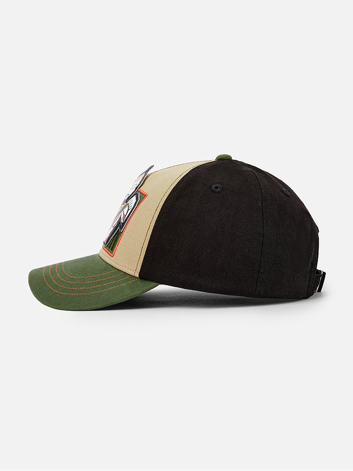casual cap hat decorated with colored print and embroidery details