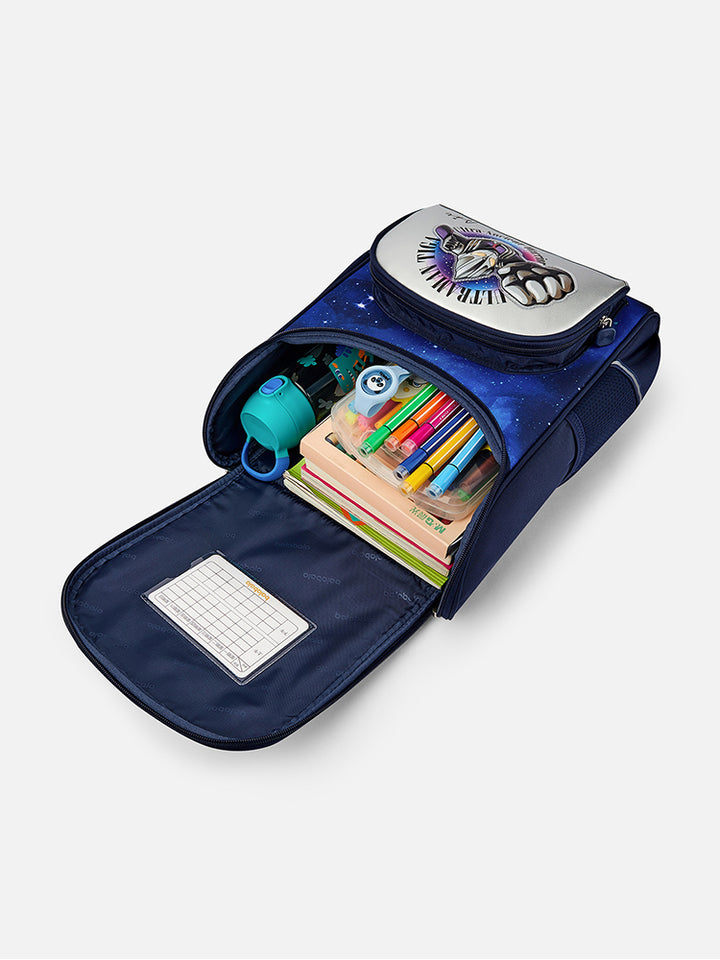 casual backpack decorated with colored print details, comes with zipper main compartment layers and dual adjustable shoulder straps