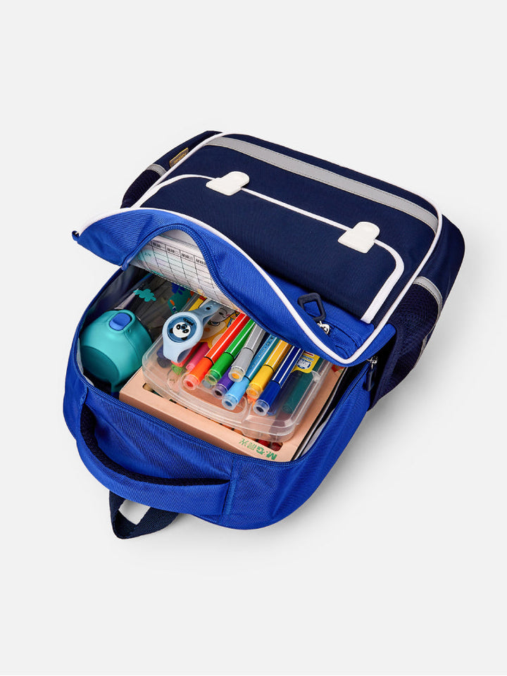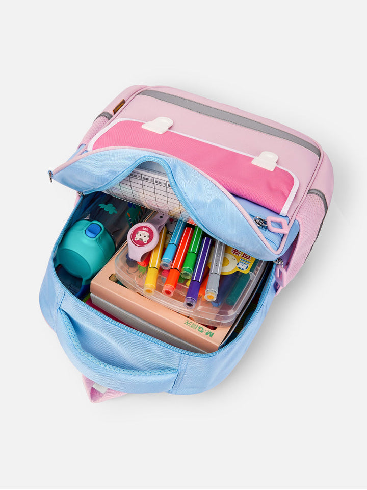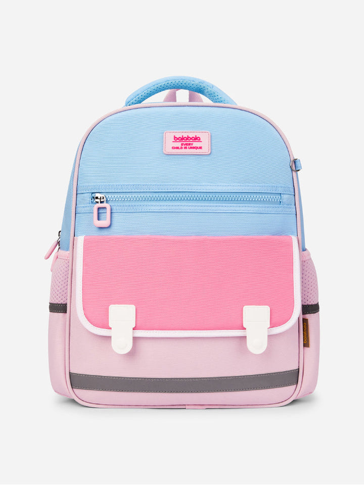 Durable and lightweight school backpack designed for kids. Features a spacious main compartment secure front pocket with buckle closure side mesh pockets and a top handle. Comfortable padded straps make it ideal for daily school use. Available in multiple colors.