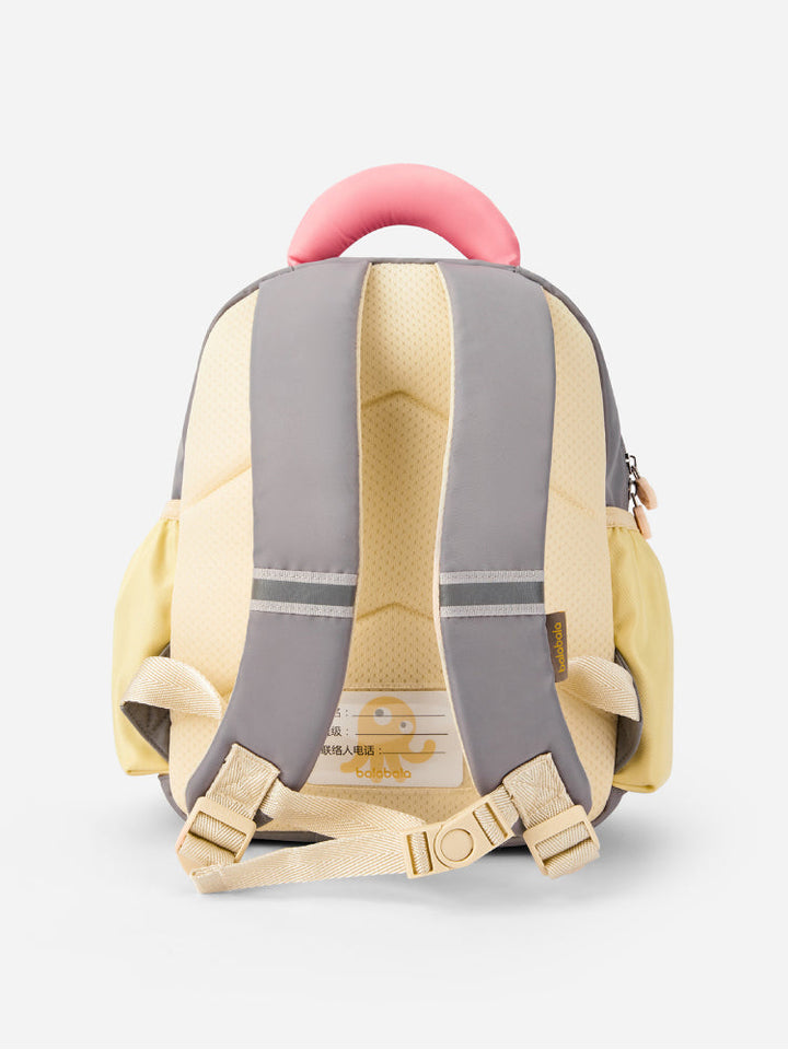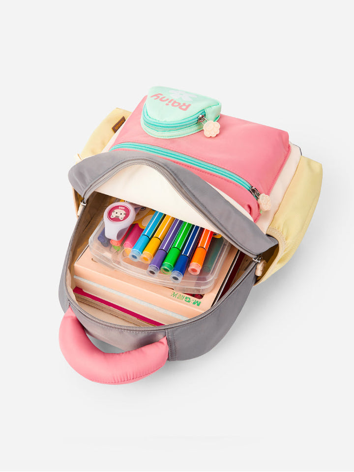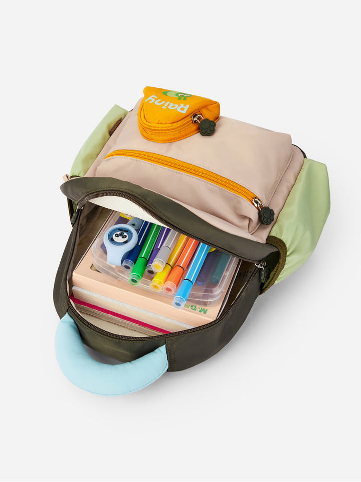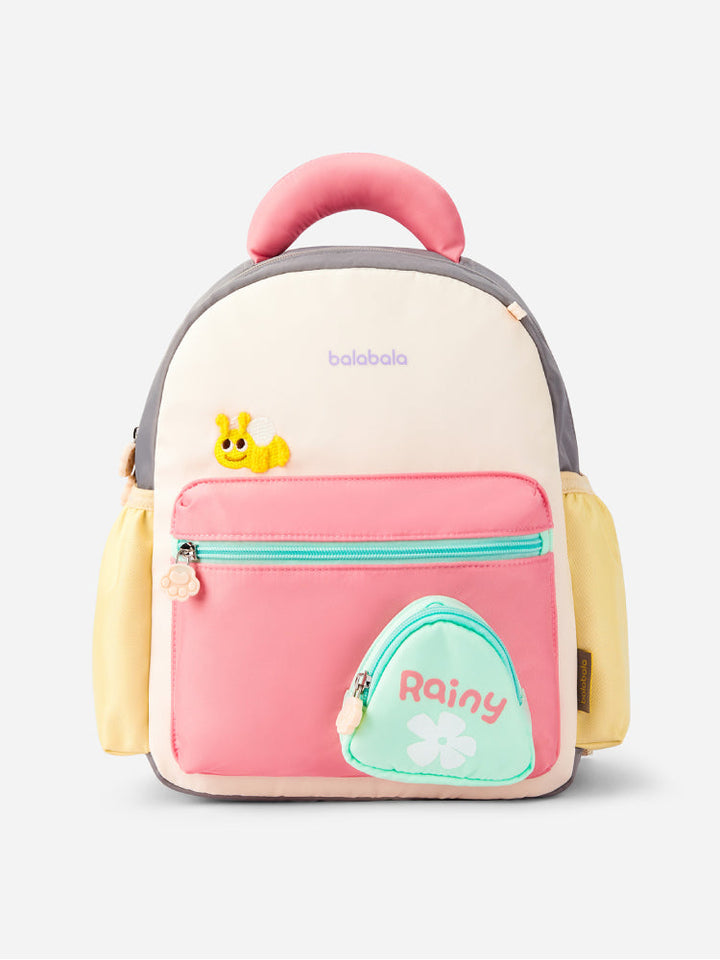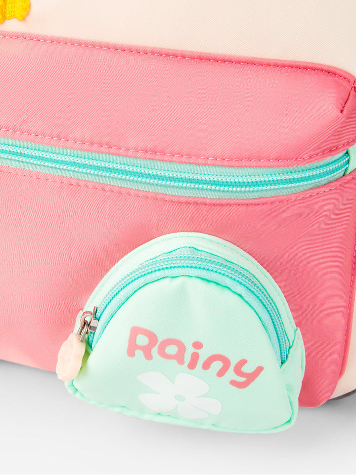 Adorable kids backpack featuring playful cartoon embroidery and colorful details. Designed with a spacious main compartment multiple front pockets and side pouches for bottles. Lightweight with padded straps for everyday comfort — perfect for school and outings.