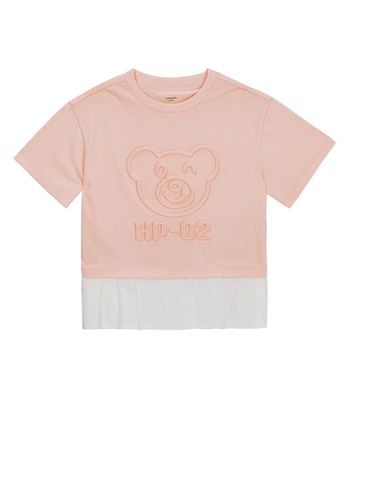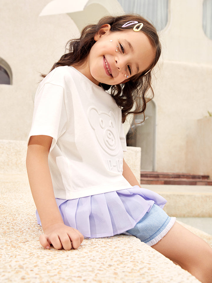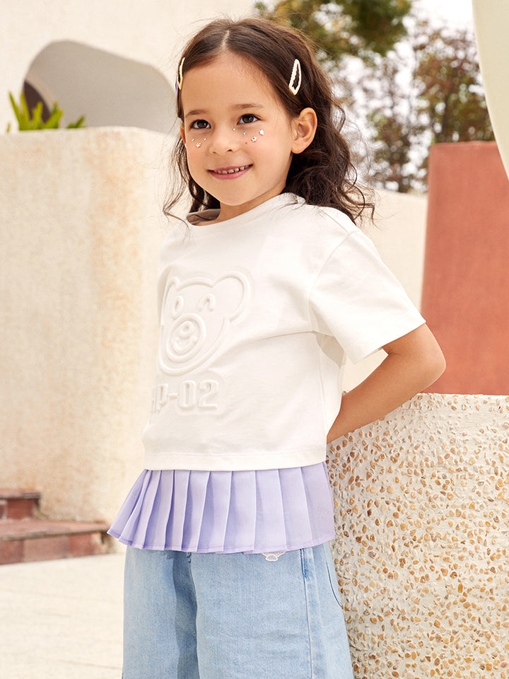 Girls' T-Shirt With Print And Pleats