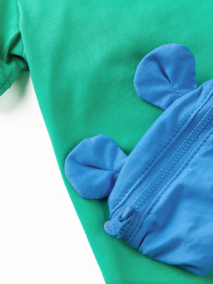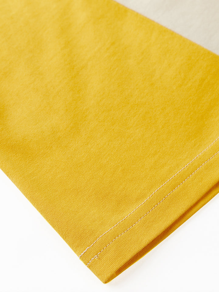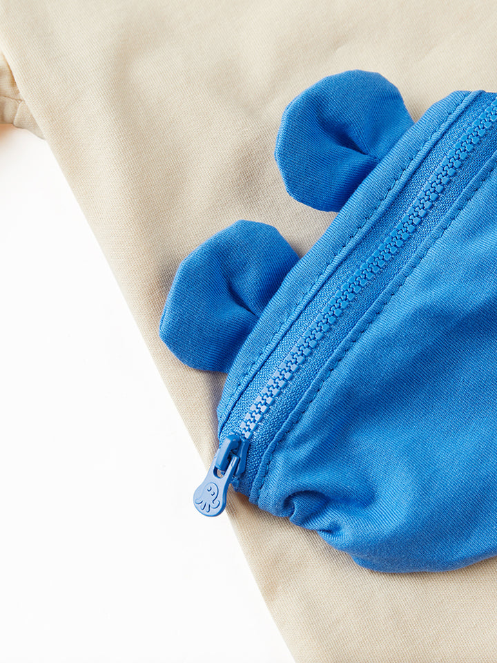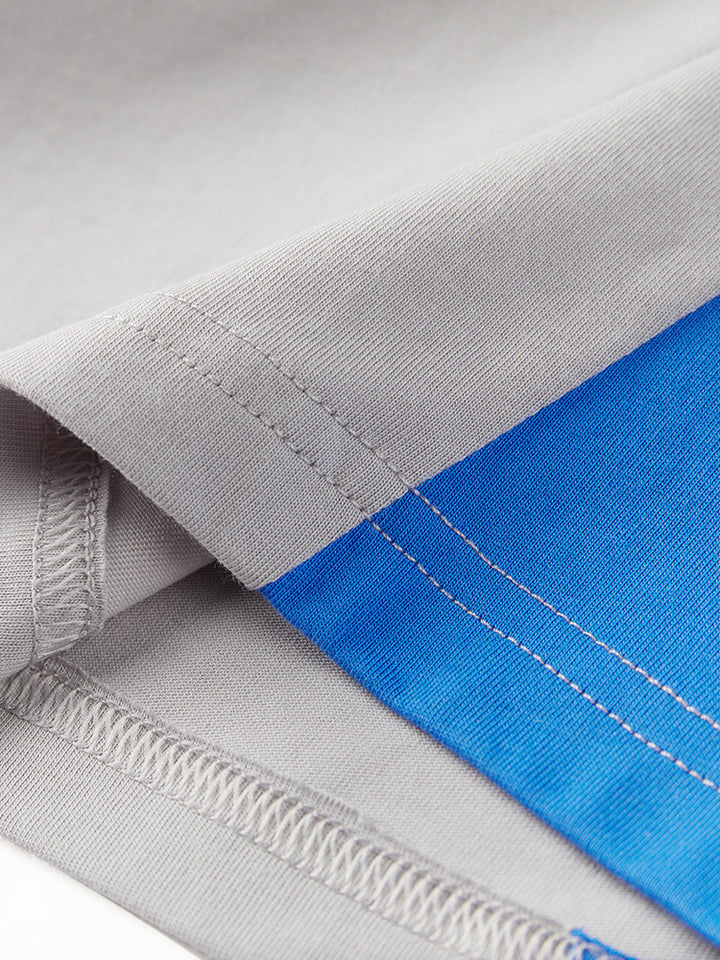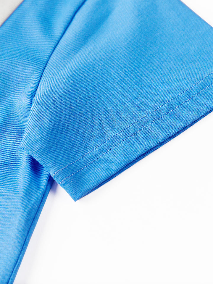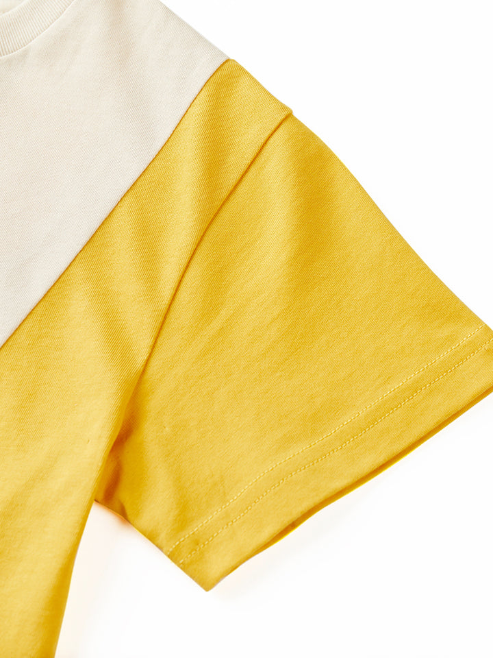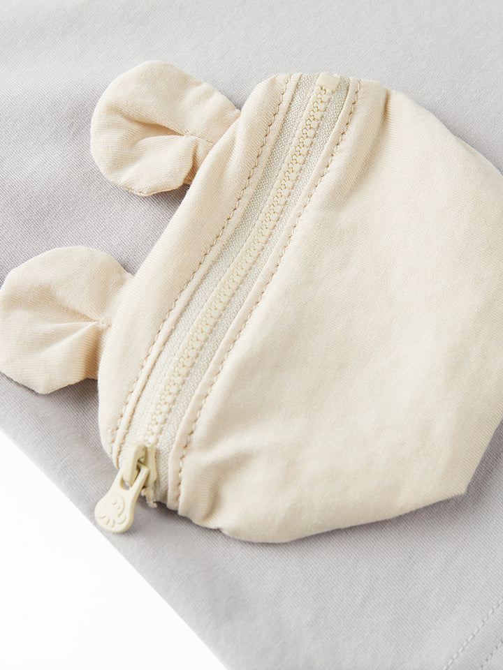 short sleeves casual t-shirt in a contrast colored pattern, decorated with a zipper pocket on the front side, comes with a rounded shape neckline