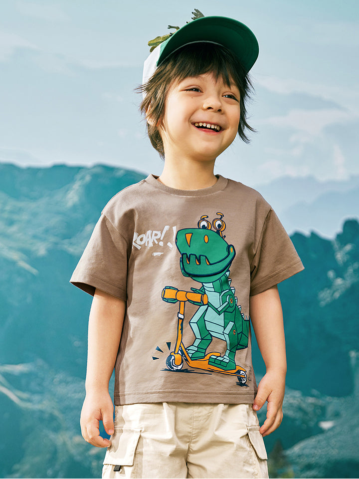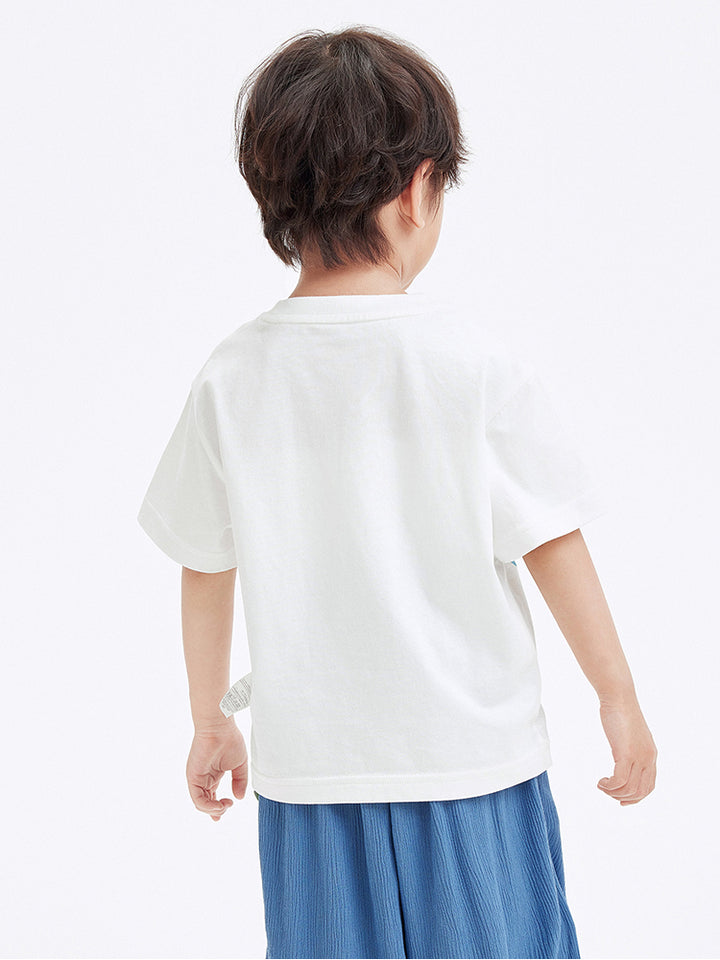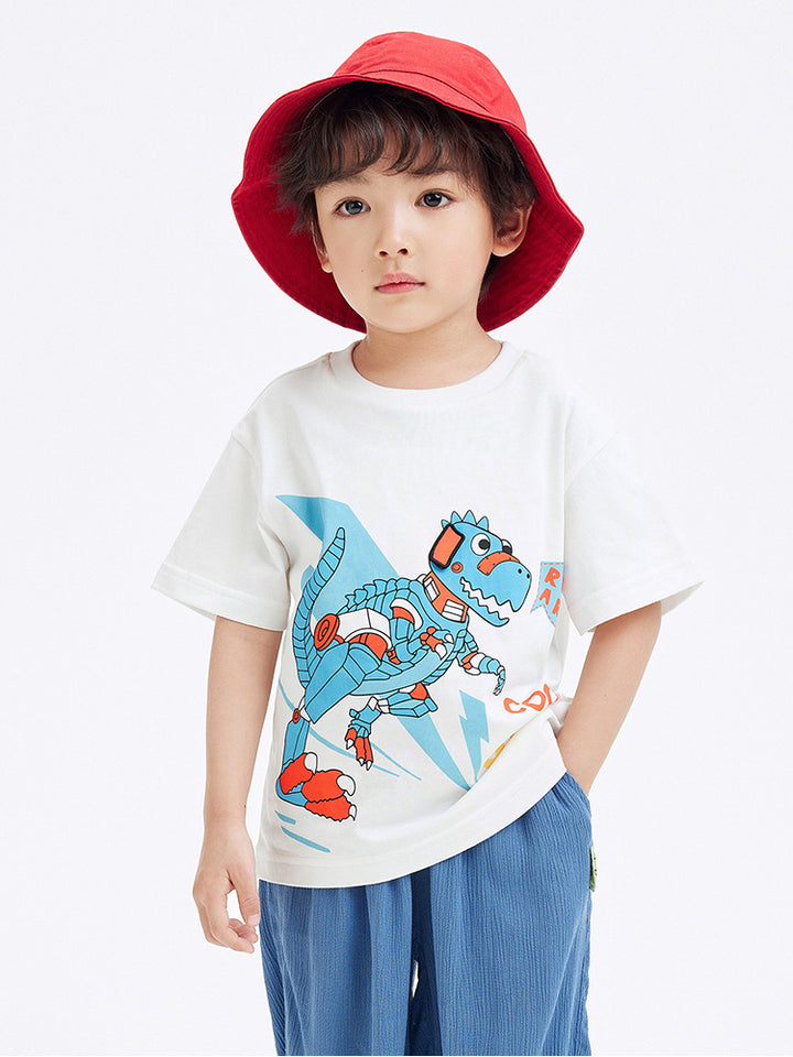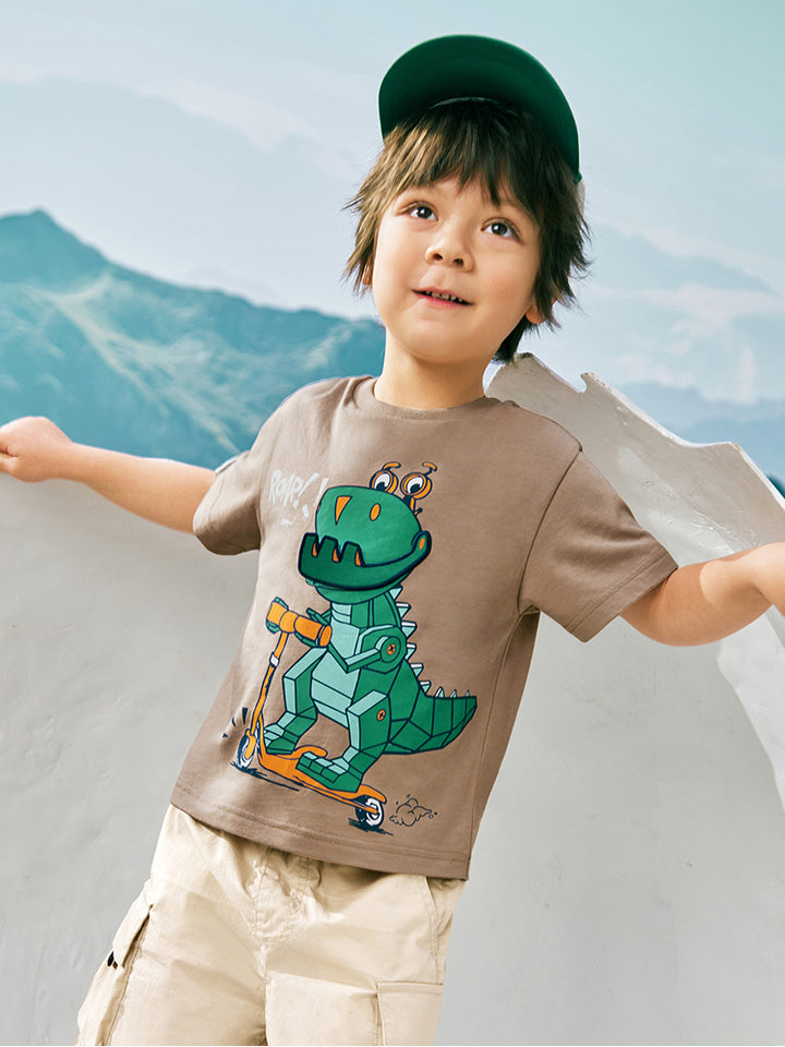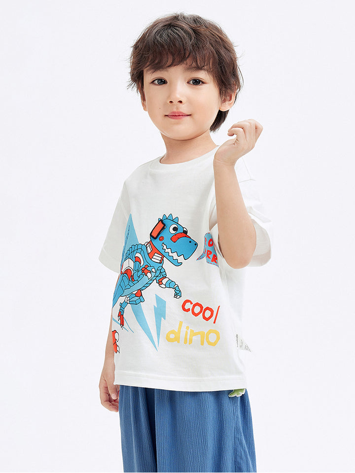 short sleeves casual boy t-shirt, decorated with a print on the front side, comes with a rounded shape neckline