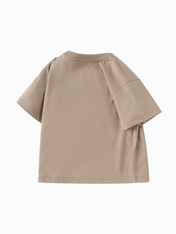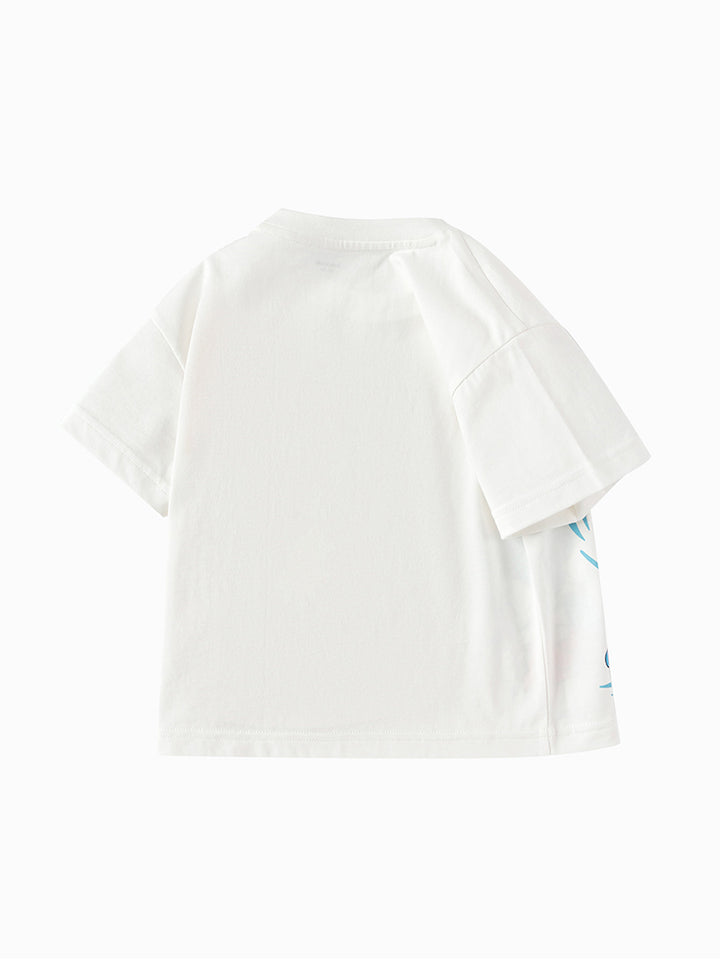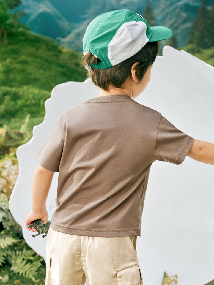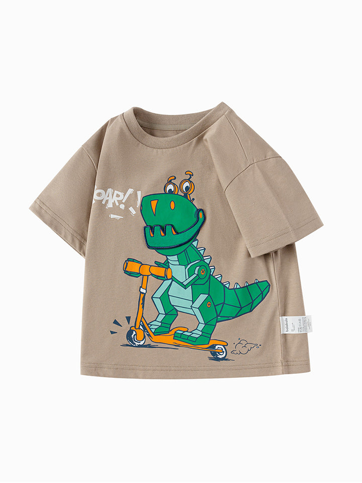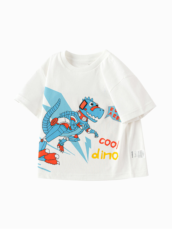 short sleeves casual boy t-shirt, decorated with a print on the front side, comes with a rounded shape neckline