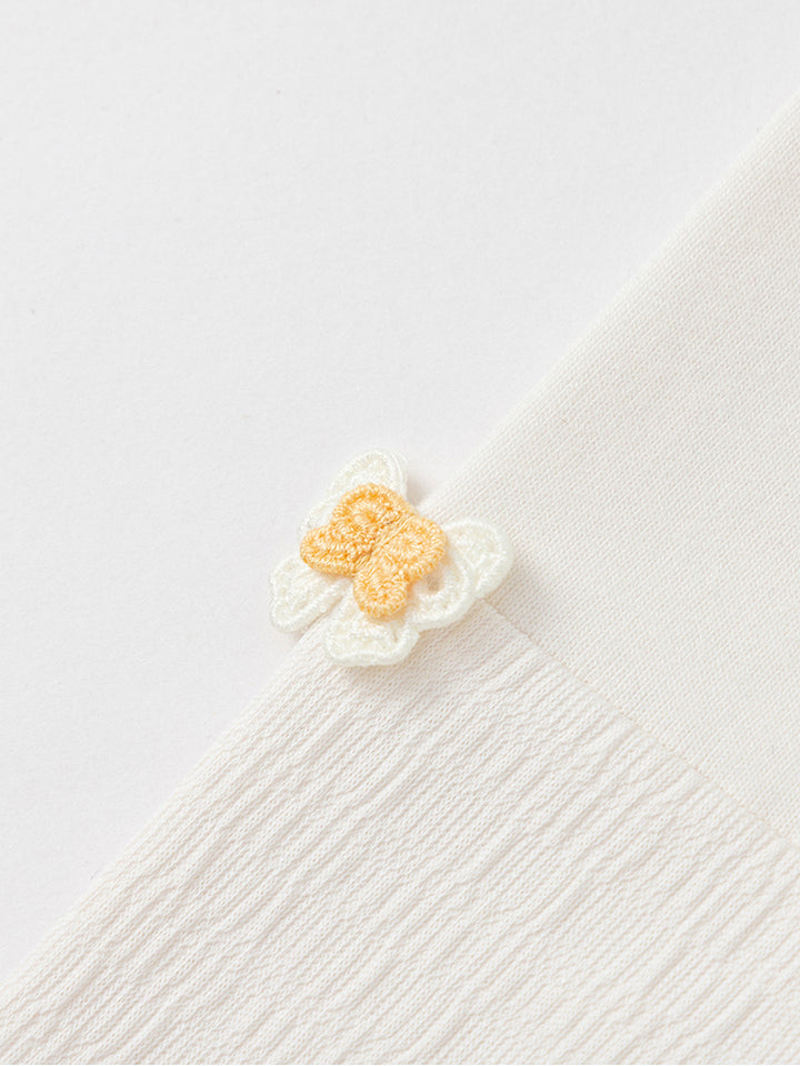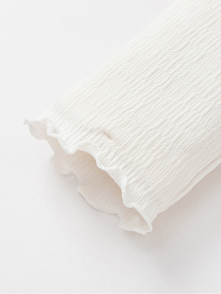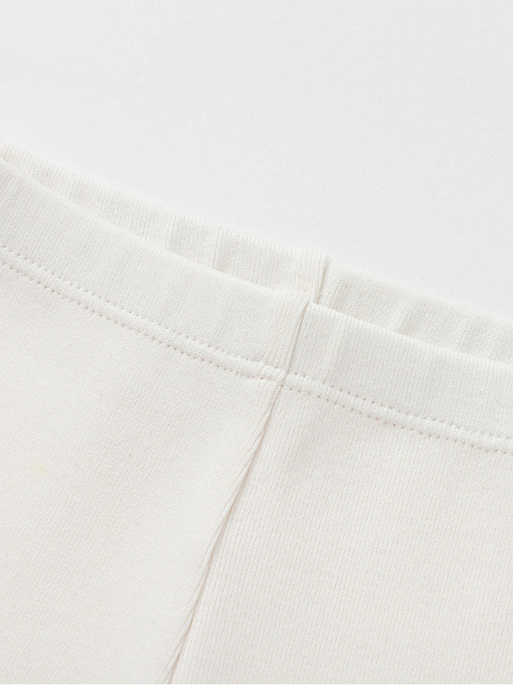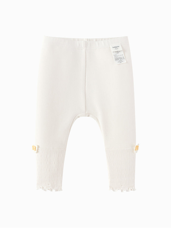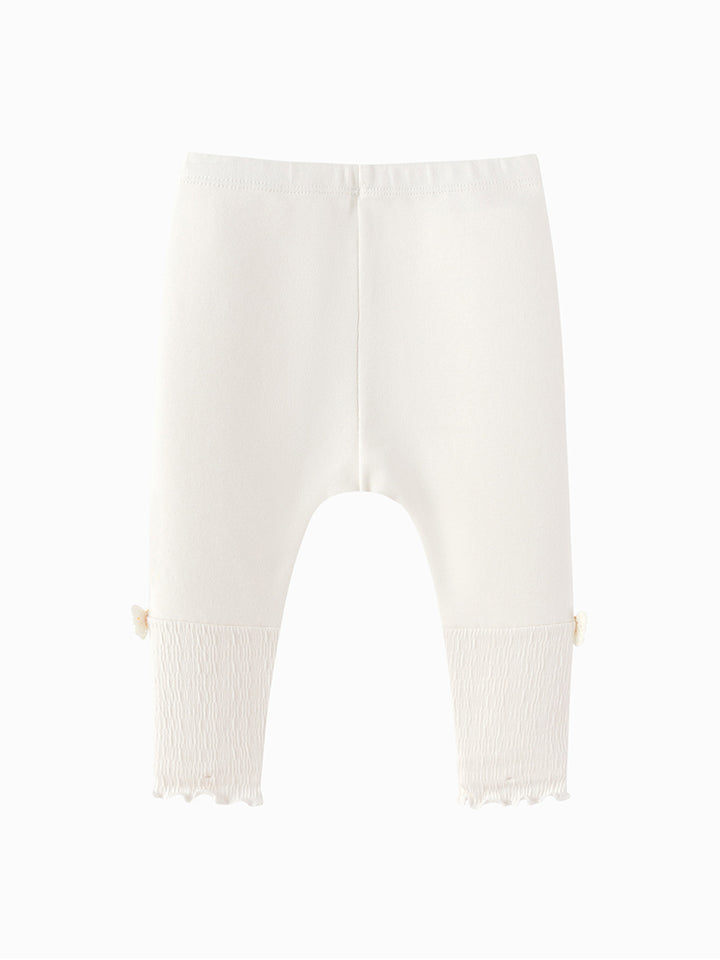 بنطلون بيبي بنمط ذو لون موحد مزين بتفاصيل منقوشة وربطات على الساقين، يأتي بخصر مطاطي مريح