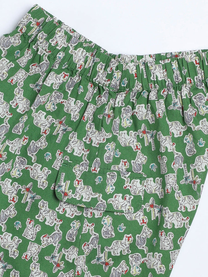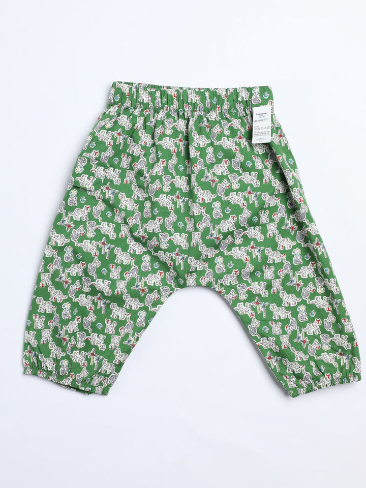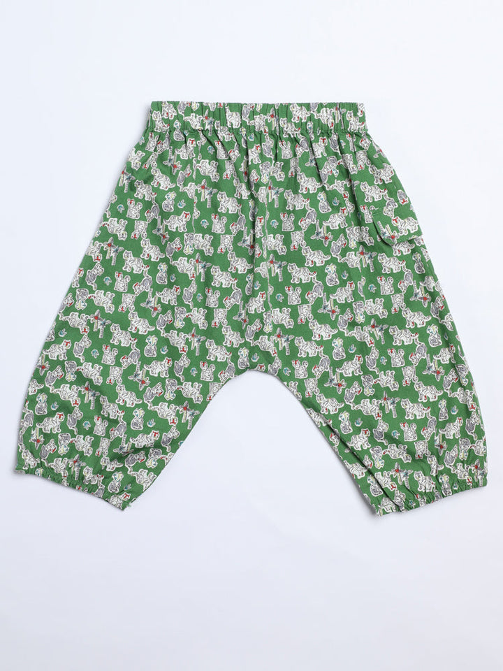 بنطلون مريح للأطفال بتصميم واسع وخصر مطاطي عملي، مزين بطبعات مرحة تغطيه بالكامل مع أطراف مطاطية لارتداء سهل ومظهر حيوي يناسب الإطلالات اليومية.