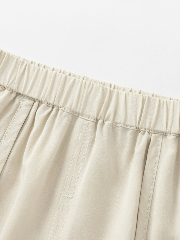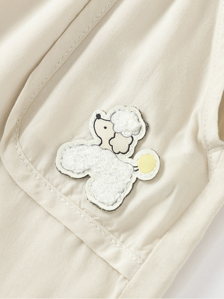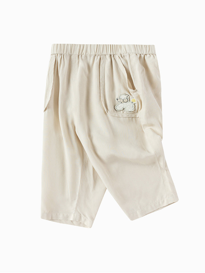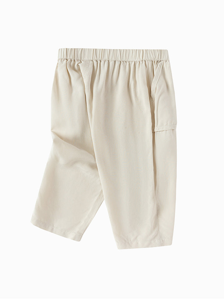 بنطلون بيبي ولادي، يأتي بنمط ذو لون موحد ومزين بتفاصيل رقعة صغيرة، جيوب من الجهة الأمامية وبخصر مطاطي مريح