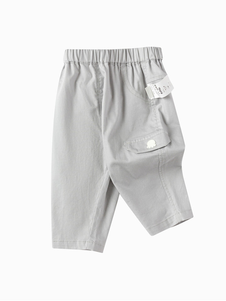 بنطلون بيبي ولادي كاجوال، مزين بجيب قلاب وطبعة صغيرة على جانب أحد الساقين، يأتي بخصر مطاطي مرن ومريح
