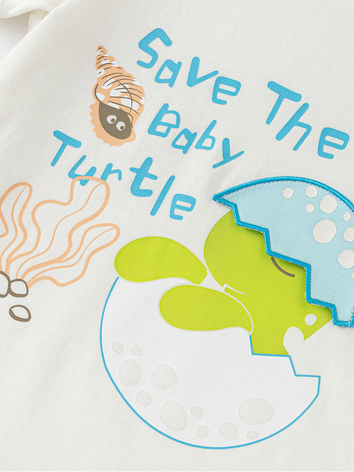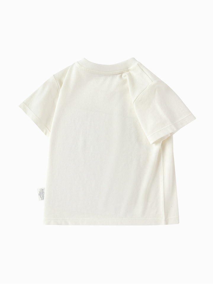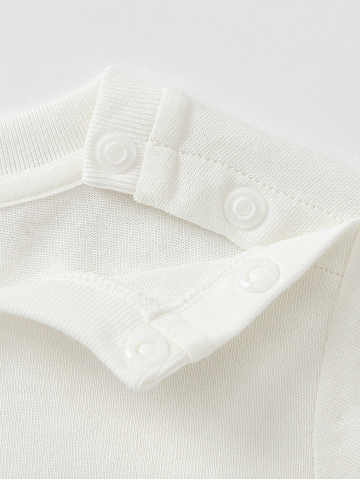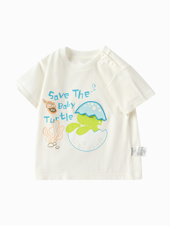 تيشيرت بيبي ولادي بأكمام قصيرة، مزينة بطبعة وتفاصيل مطرزة من الجهة الأمامية، تأتي بأزرار كبس للإغلاق على أحد الأكتاف وبياقة مدورة الشكل