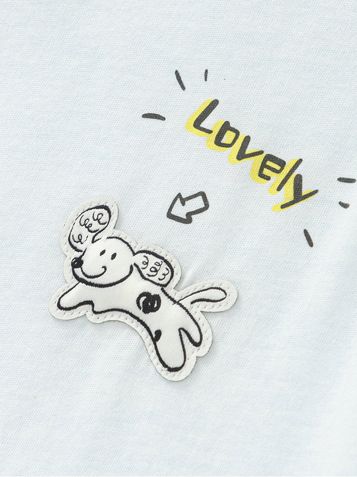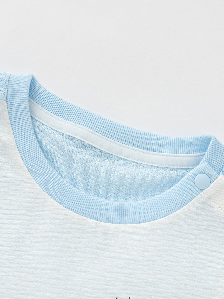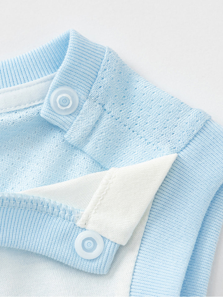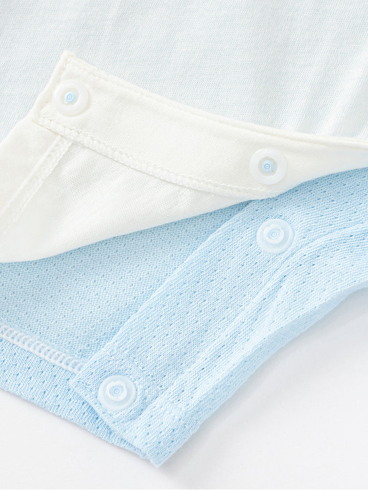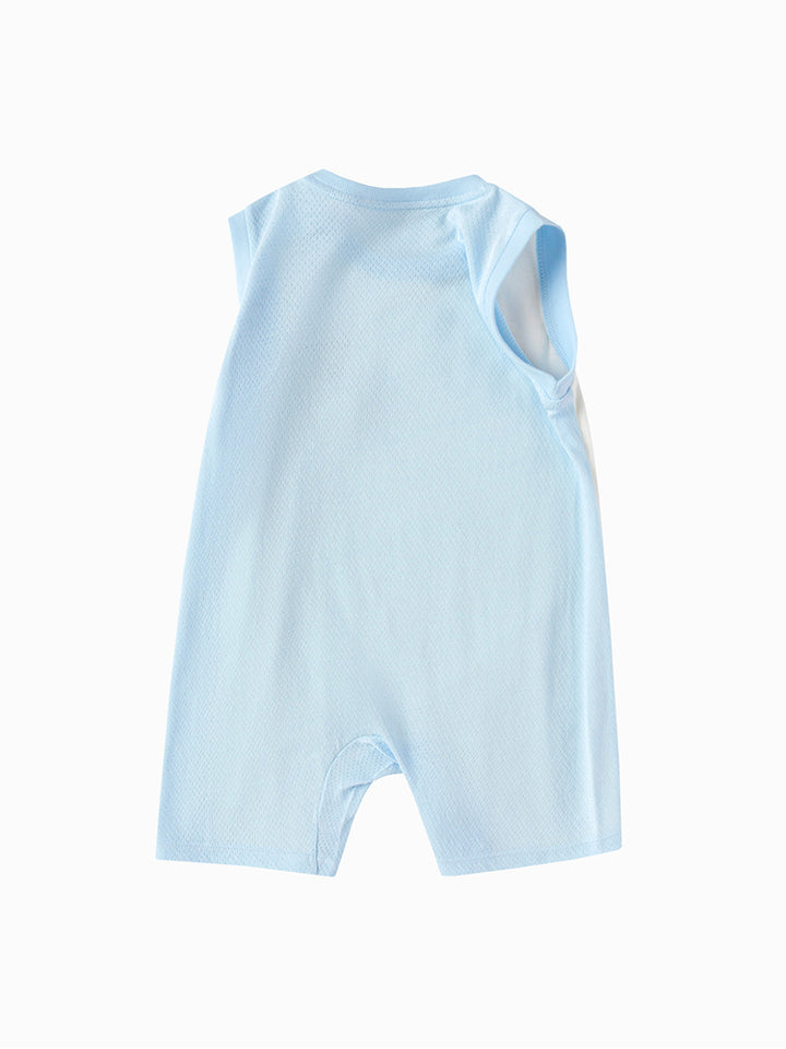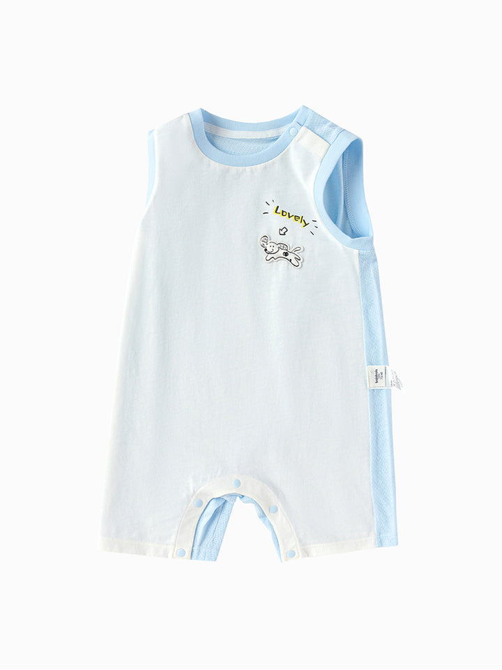 أفرهول بيبي ولادي بدون أكمام، مزين بطبعة من الجهة الأمامية، يأتي بأزرار للإغلاق على أحد الأكتاف ومن الجهة السفلية وبياقة مدورة الشكل