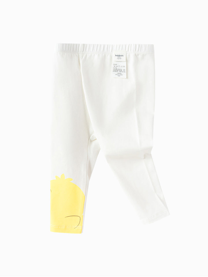 بنطلون ليقنز بيبي بناتي كاجوال بخامة قابلة للتمدد تأخذ شكل الجسم، مزين بطبعة على أحد الساقين، ويأتي بخصر مطاطي مريح