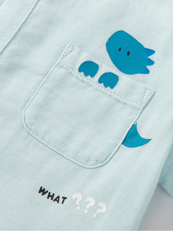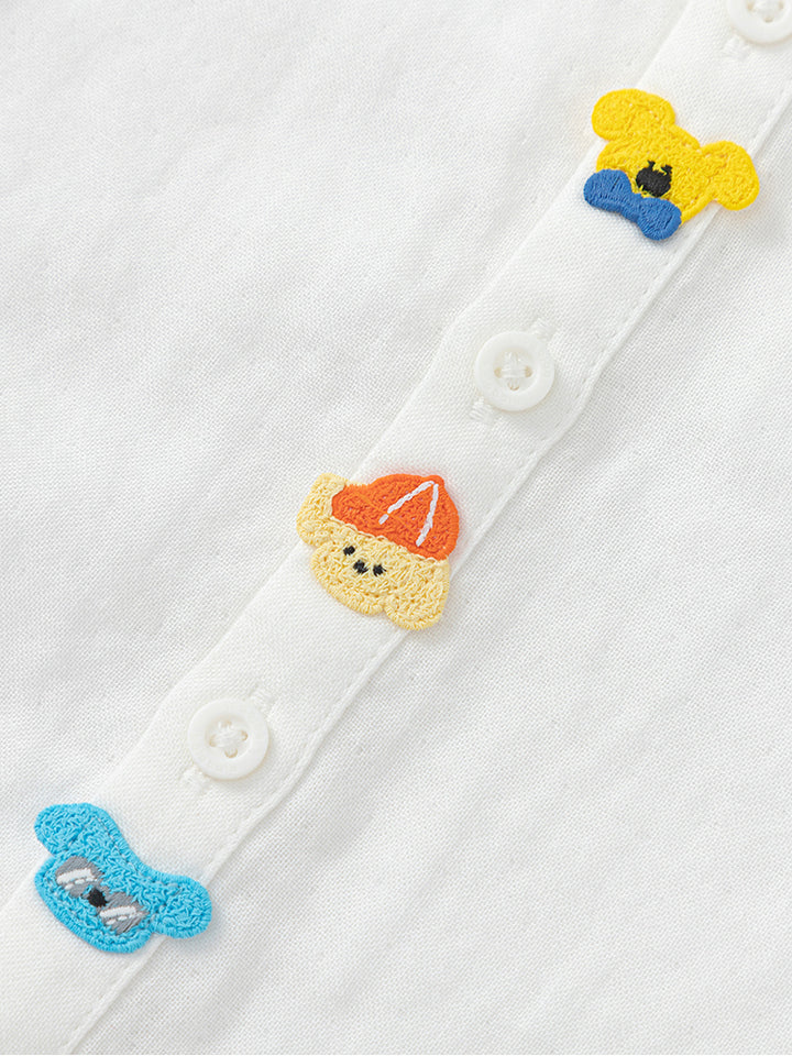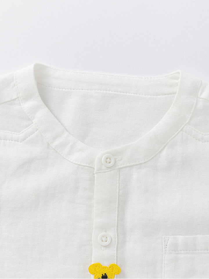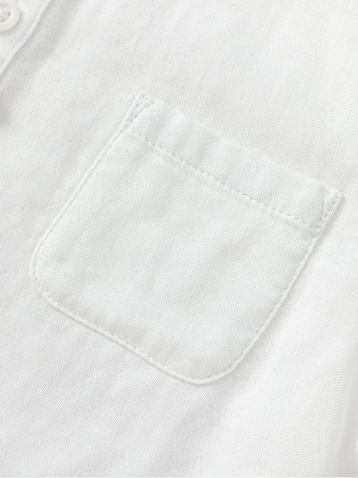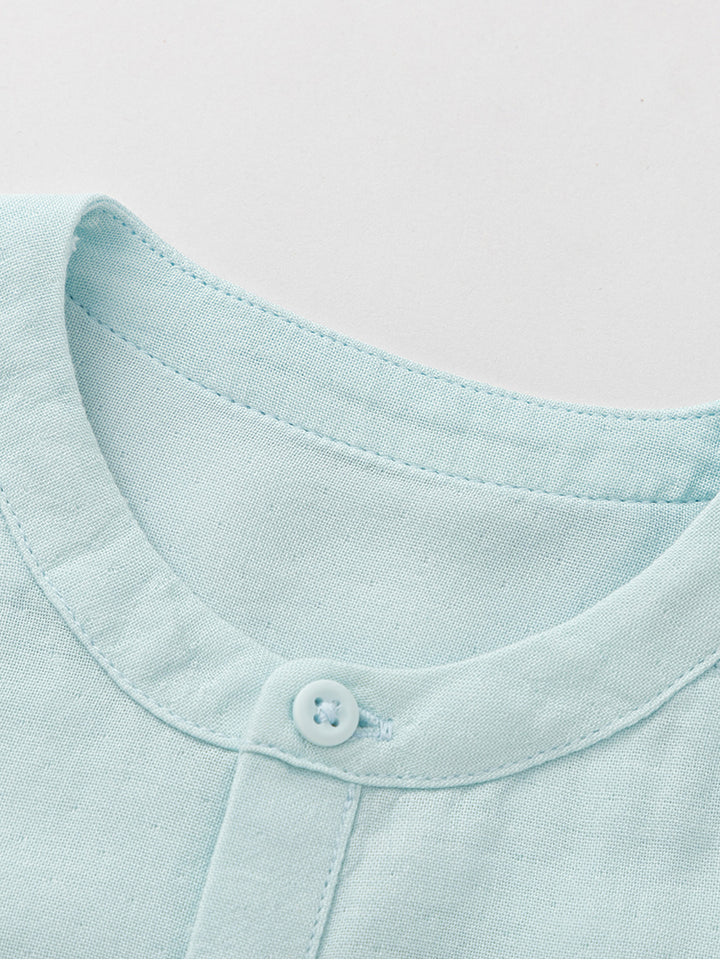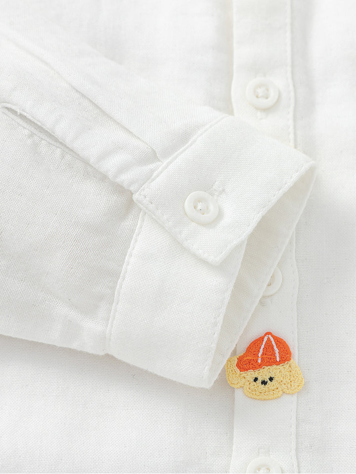 قميص بأكمام طويلة ونمط لون موحد، يأتي بأزرار ملونة للإغلاق من الجهة الأمامية وبياقة مدورة