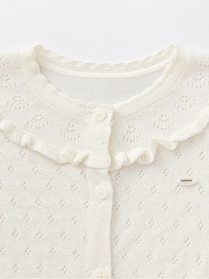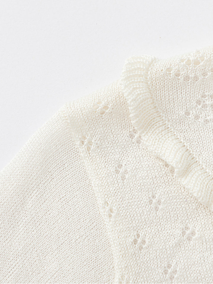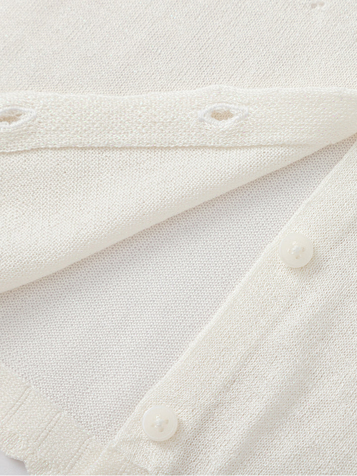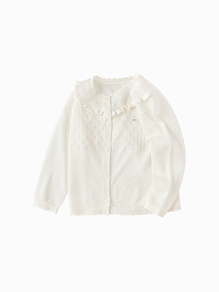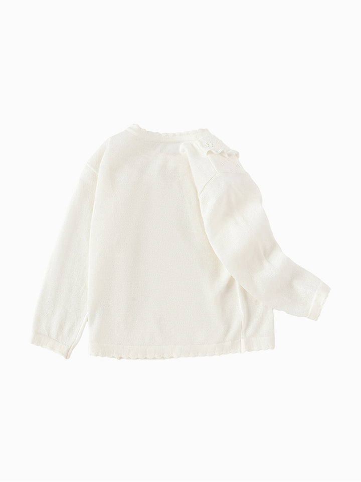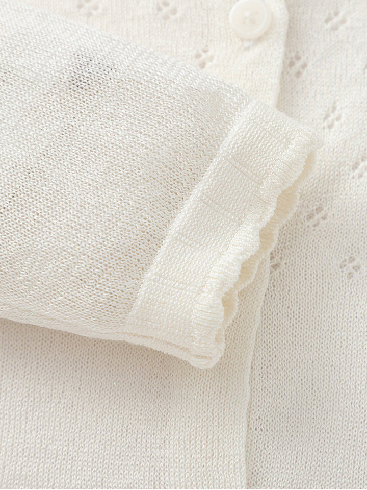 جاكيت كاديغان بأكمام طويلة وبخامة نسيج محبوك بنمط لون موحد، يأتي بأزارار للإغلاق من الجهة الأمامية وبياقة مدورة الشكل