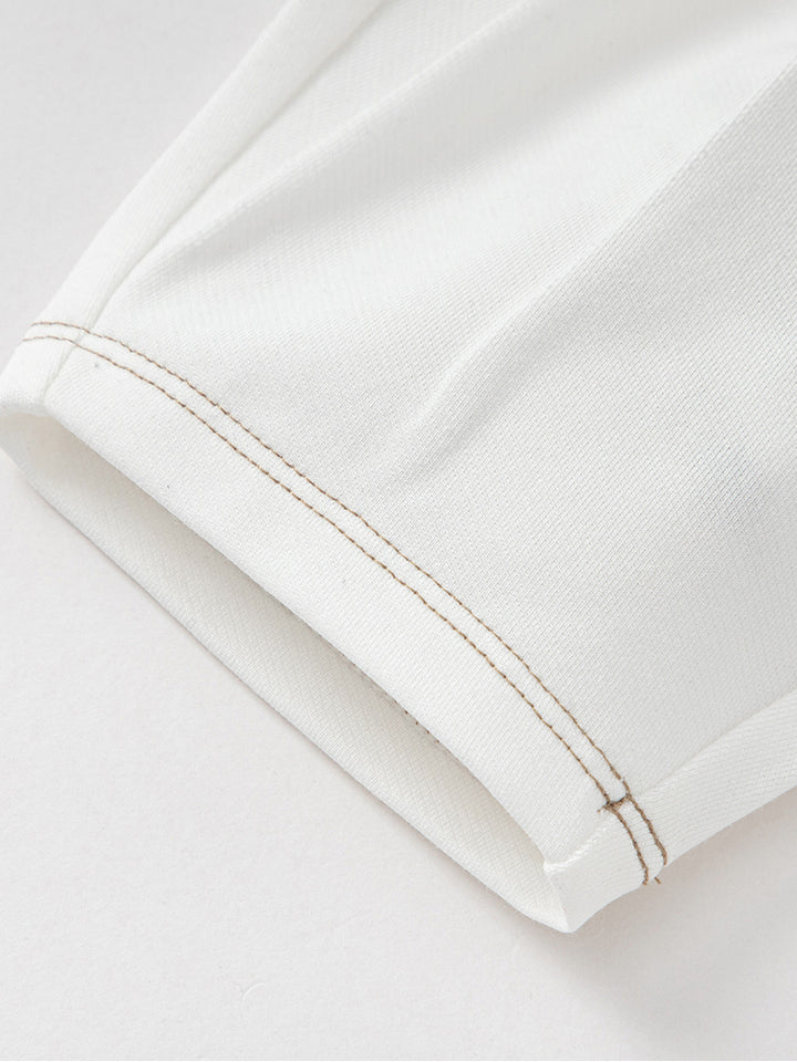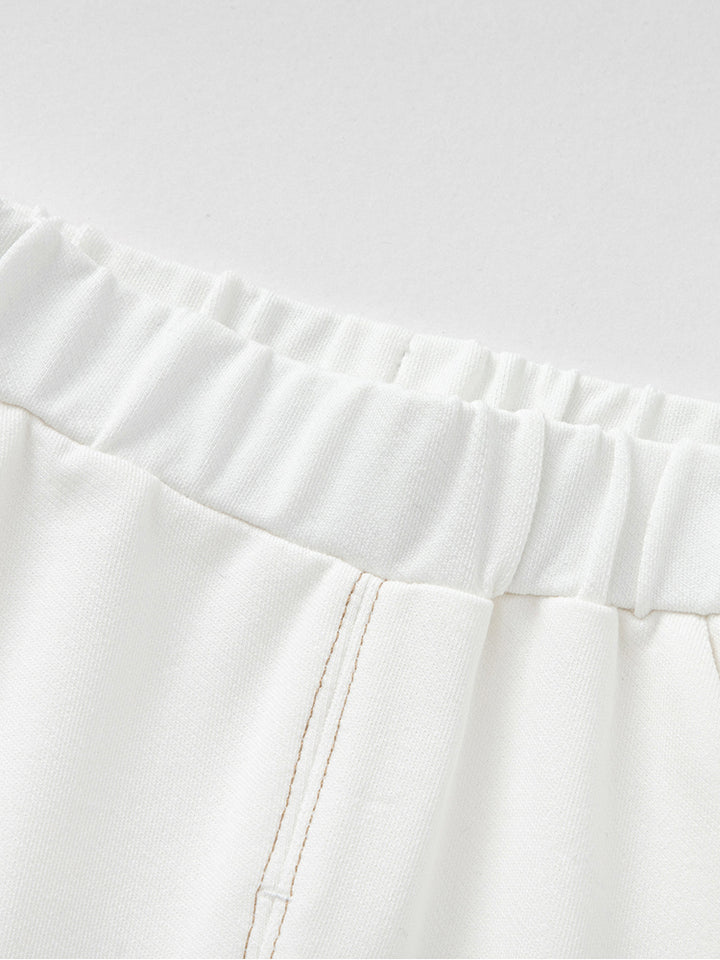 بنطلون فضفاض بنمط لون موحد، يأتي بجيوب من الجهة الأمامية وخصر مطاطي مريح