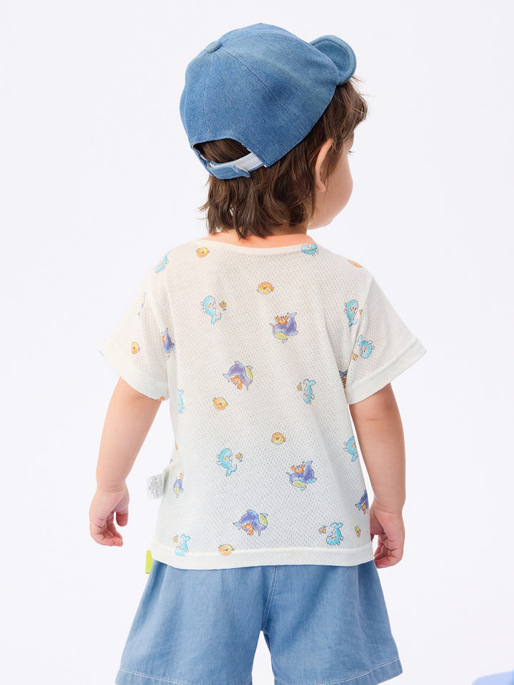 تي شيرت طفل قصير الأكمام مع طباعة كاملة للأولاد