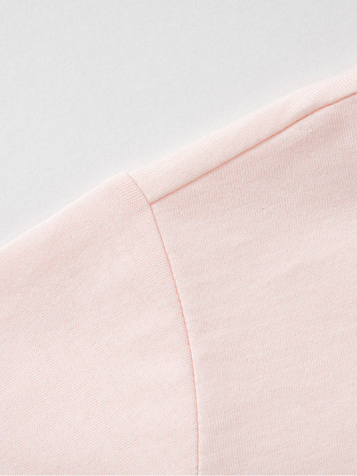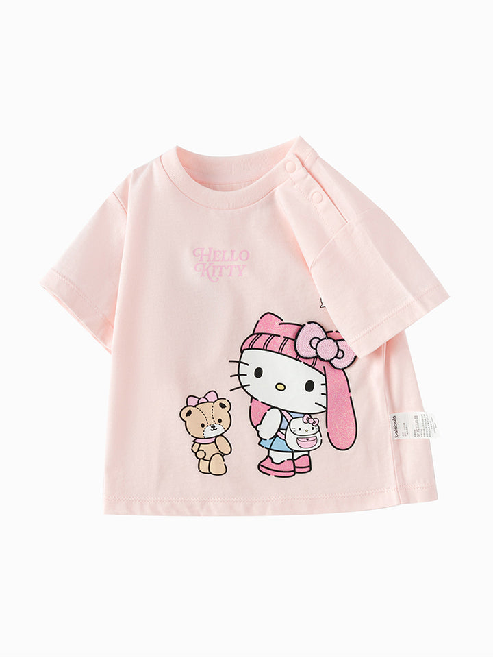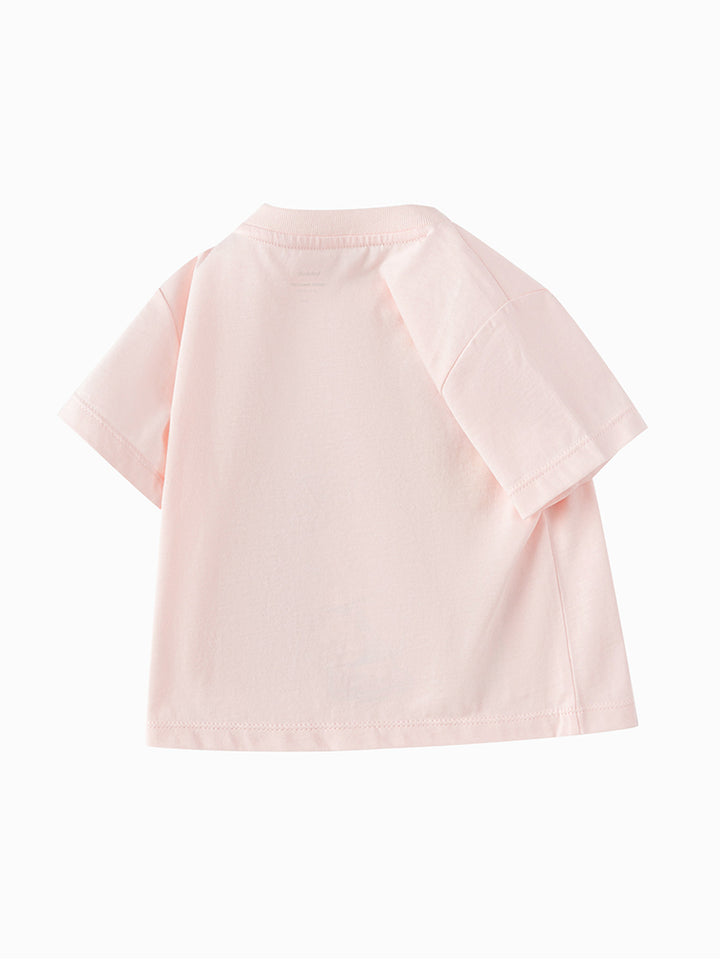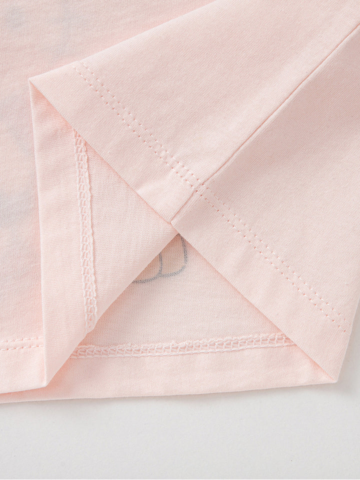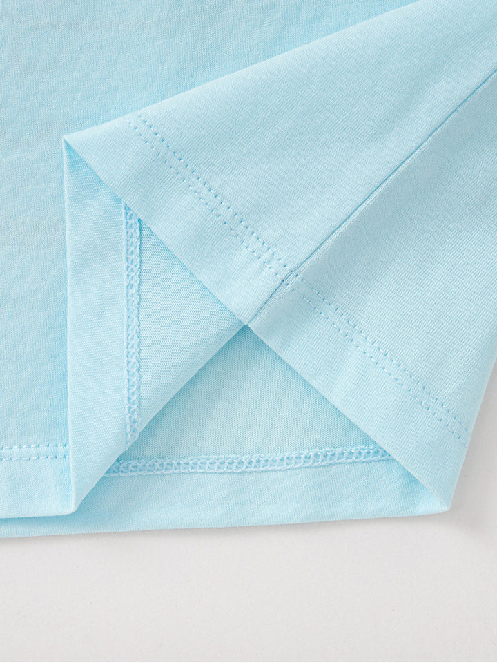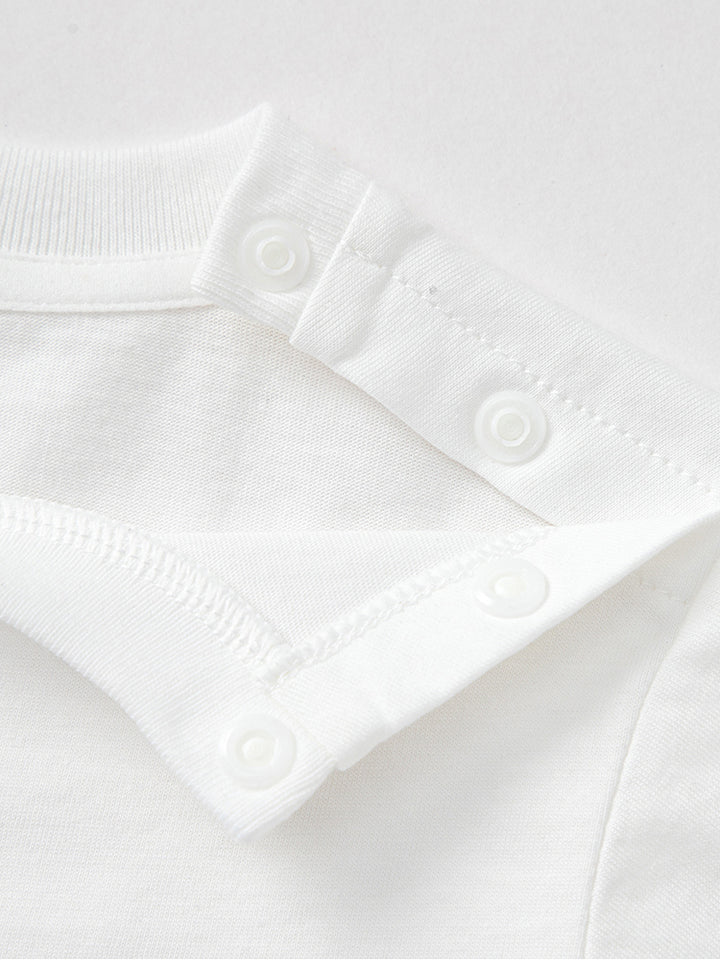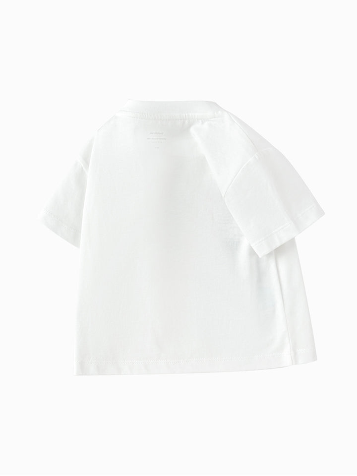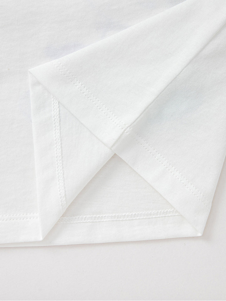 تيشيرت بأكمام قصيرة، مزين بتفاصيل طبعة من الجهة الأمامية، يأتي بأزرار على أحد الأكتاف وبياقة مدورة الشكل
