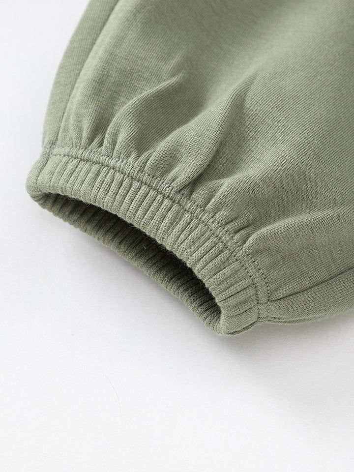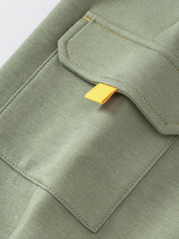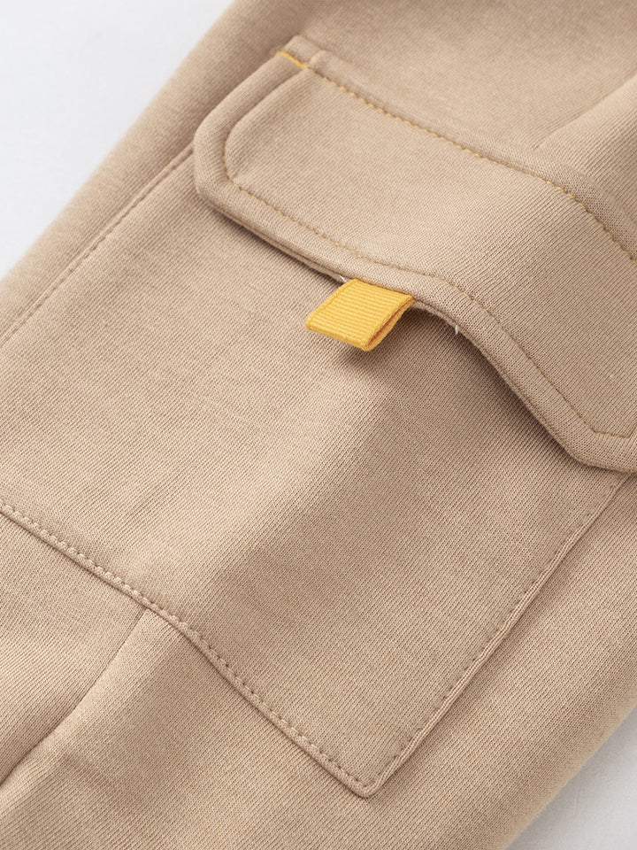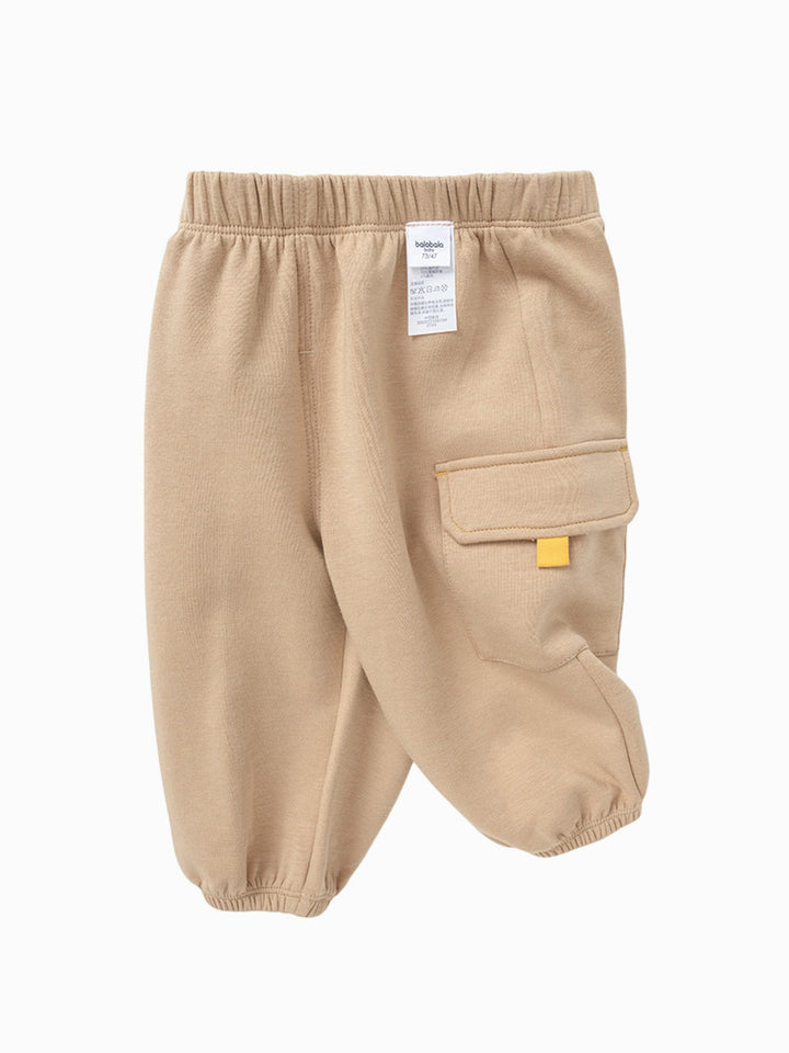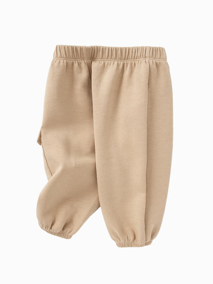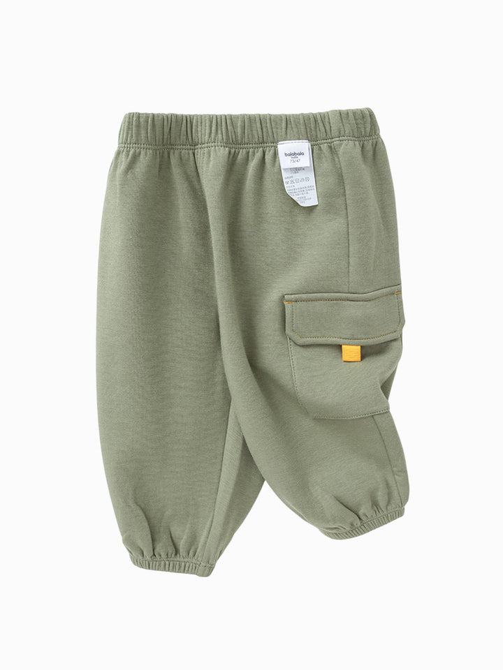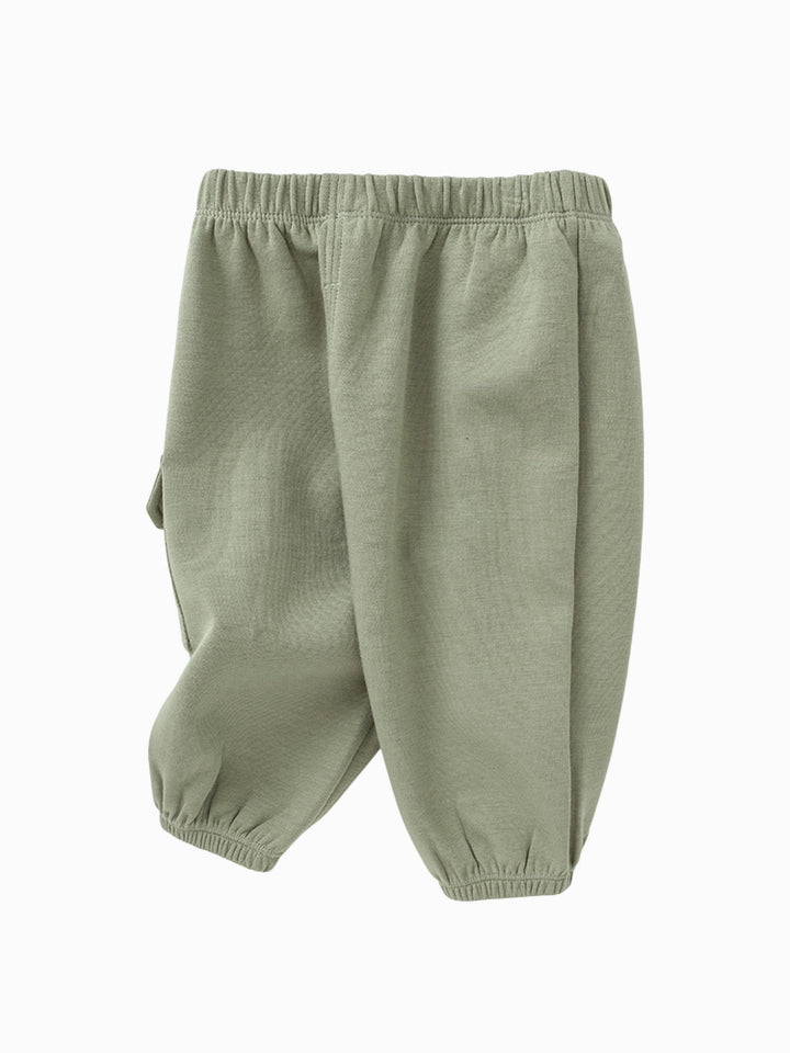 بنطلون بيبي بنمط ذو لون موحد، يأتي بجيب قلاب على جانب أحد الساقين وبخصر مطاطي مريح