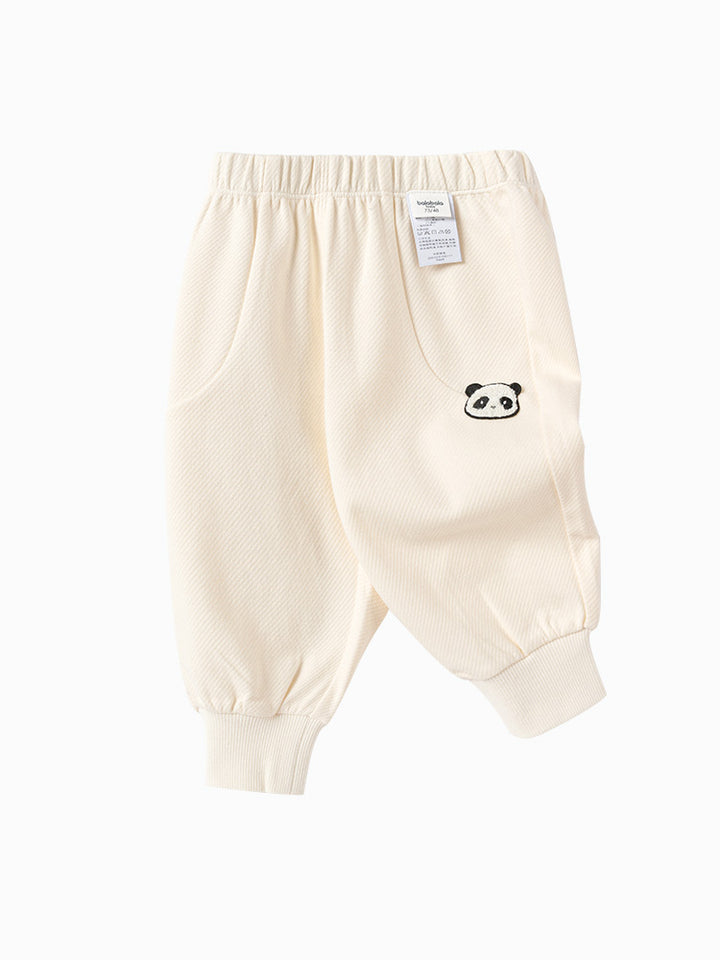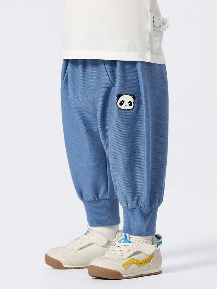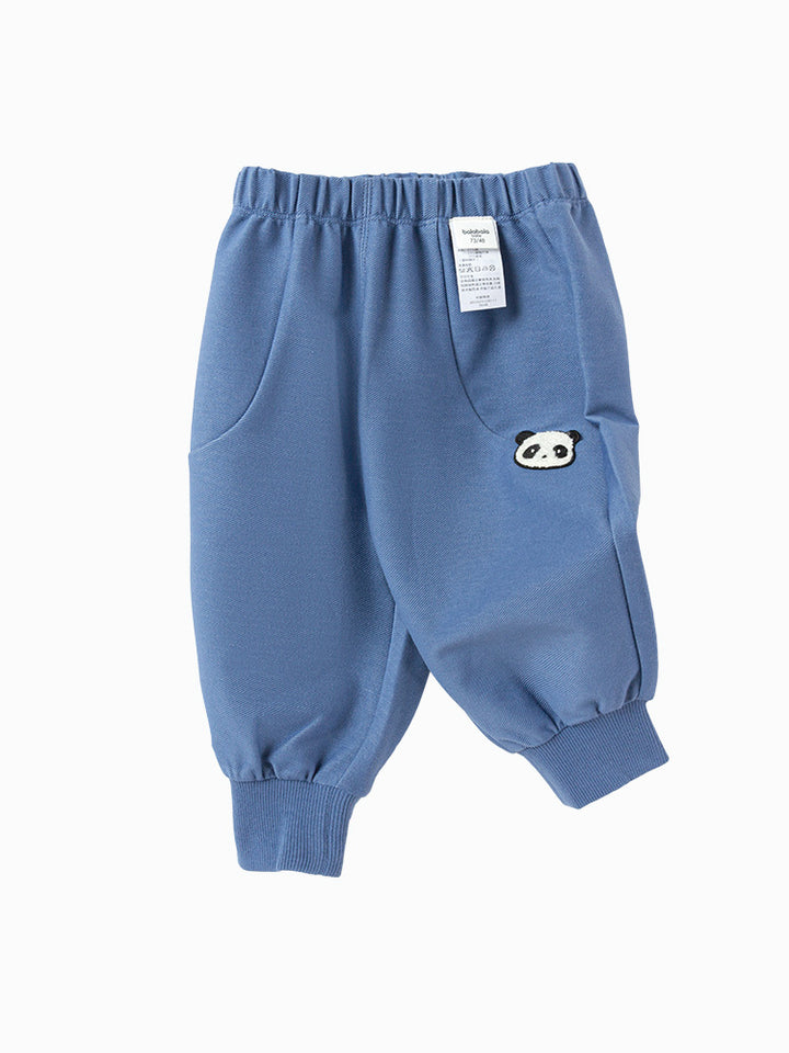 بنطلون كاجوال بلون موحد، مزين برقعة صغيرة على شكل باندا من الجهة الأمامية، يأتي بخصر مطاطي مرن ومريح