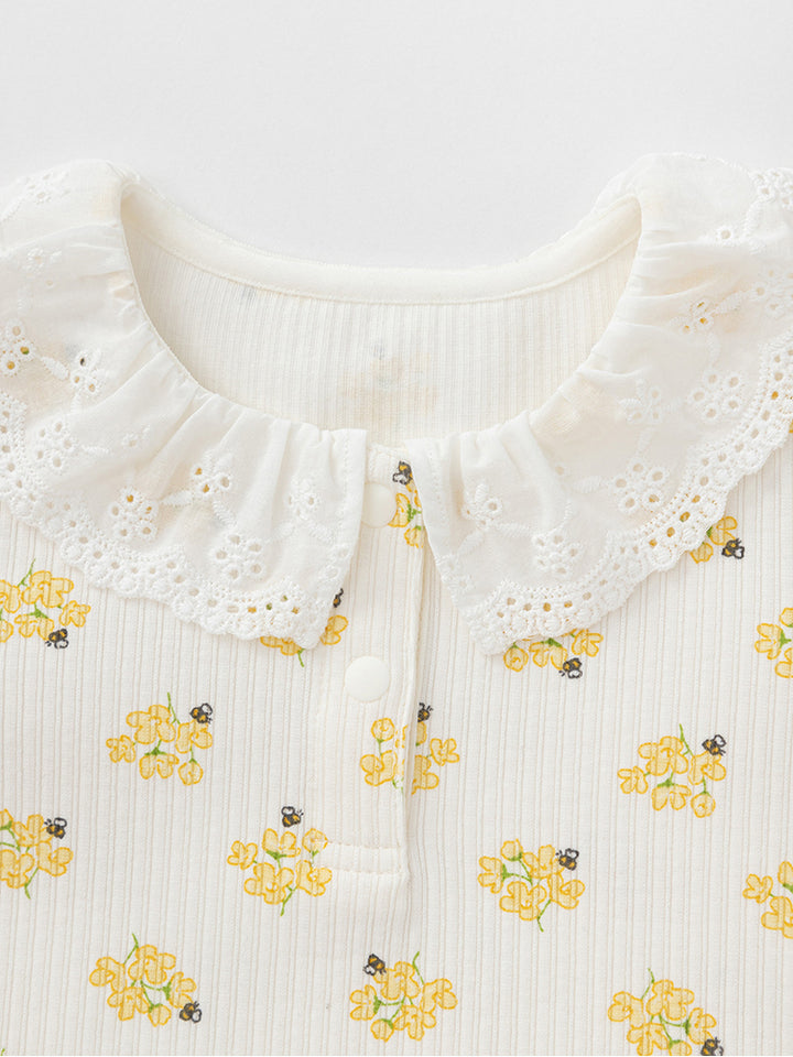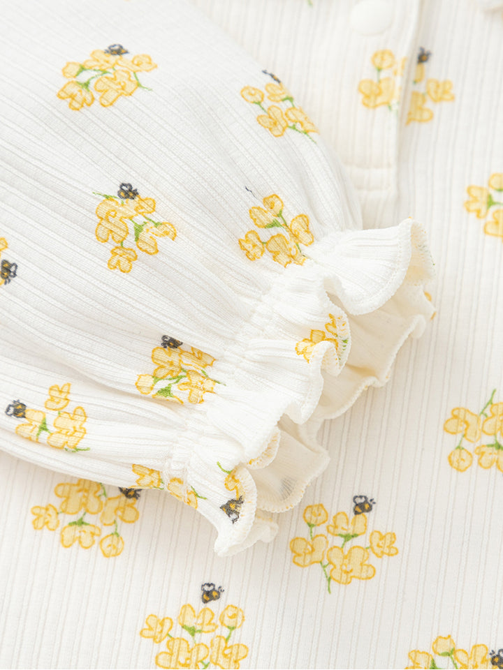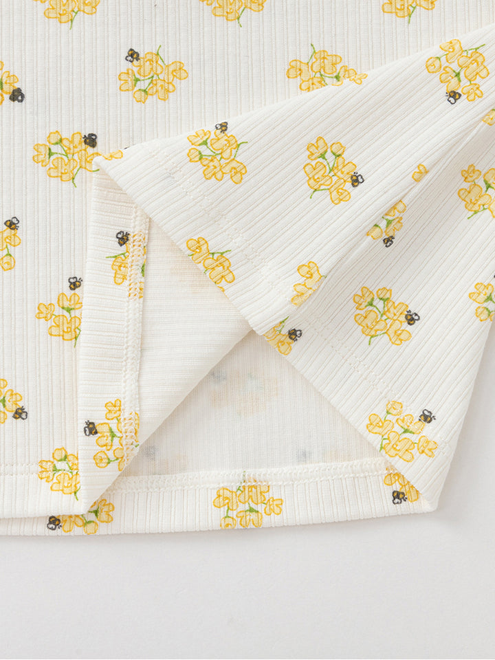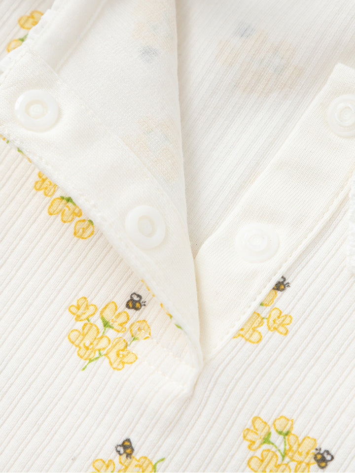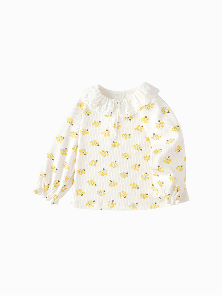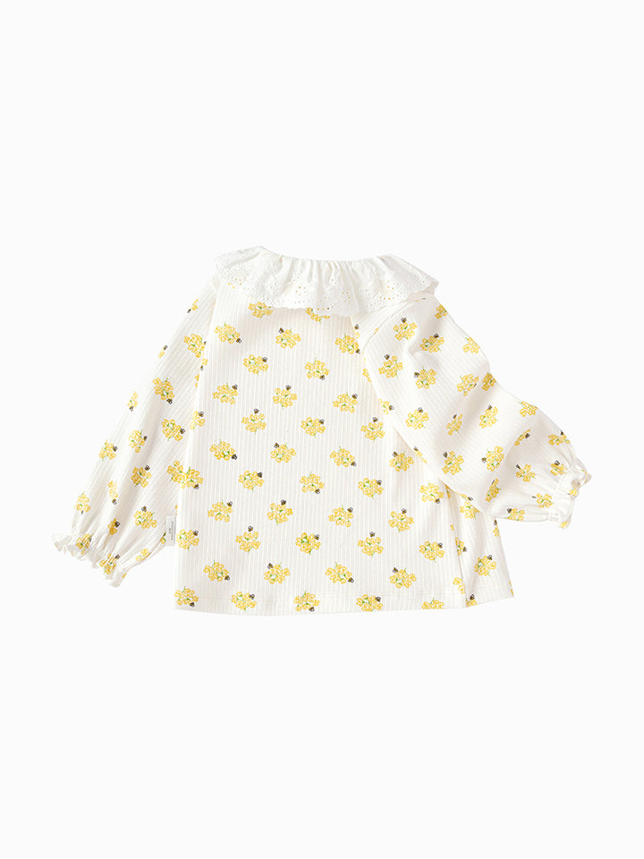 بلوزة بناتي بأكمام طويلة، مزينة بنمط طبعات على كامل التصميم، تأتي بأزرار كبس وياقة مدورة