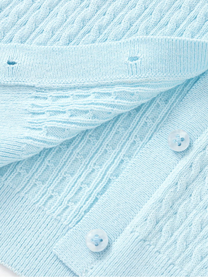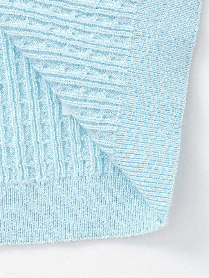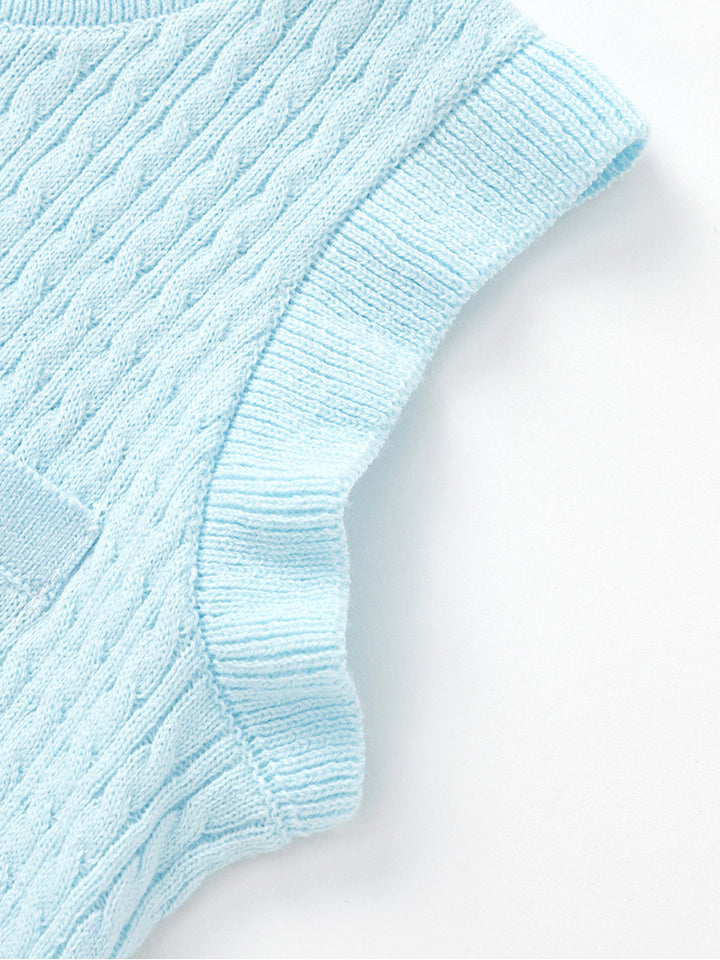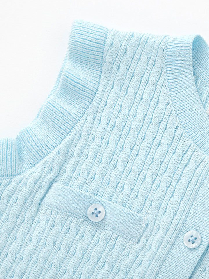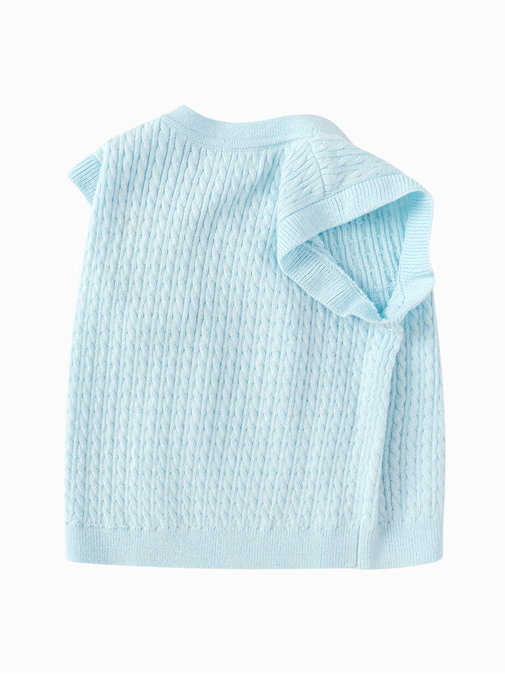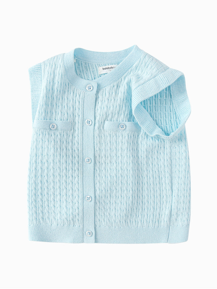 فيست بناتي بدون اكمام بخامة نسيج محبوك بنمط ذو لون موحد، ياتي بأزرار للإغلاق من الجهة الأمامية