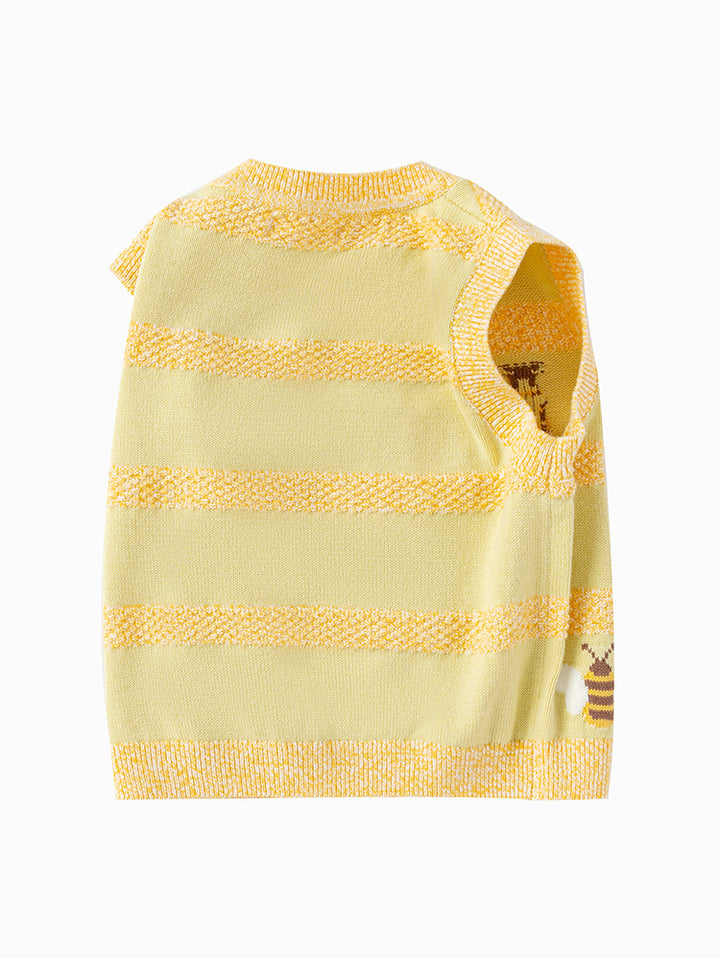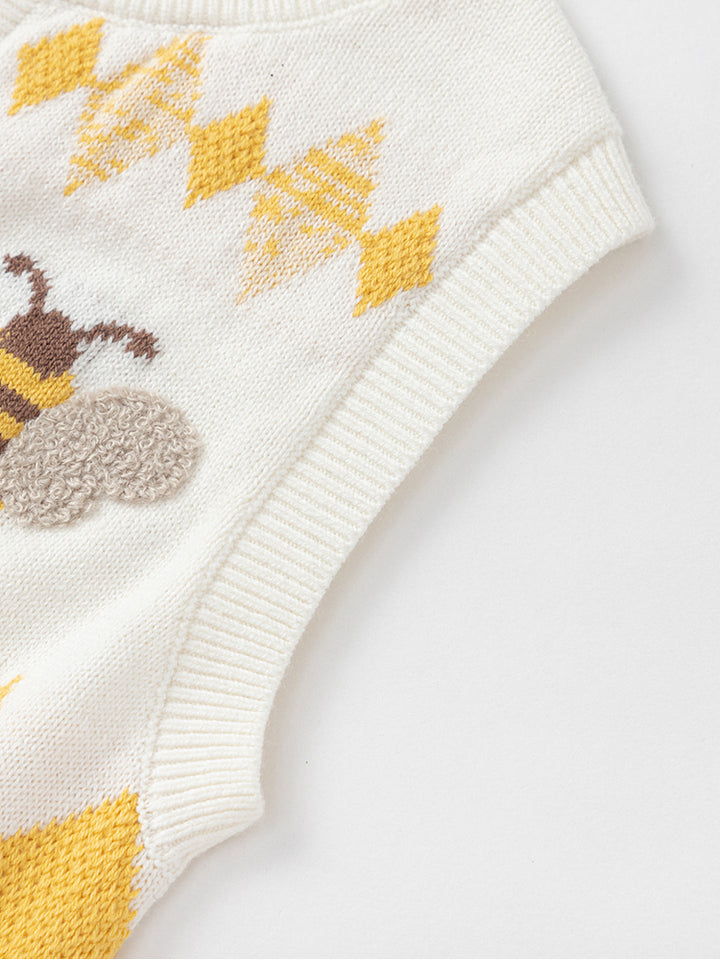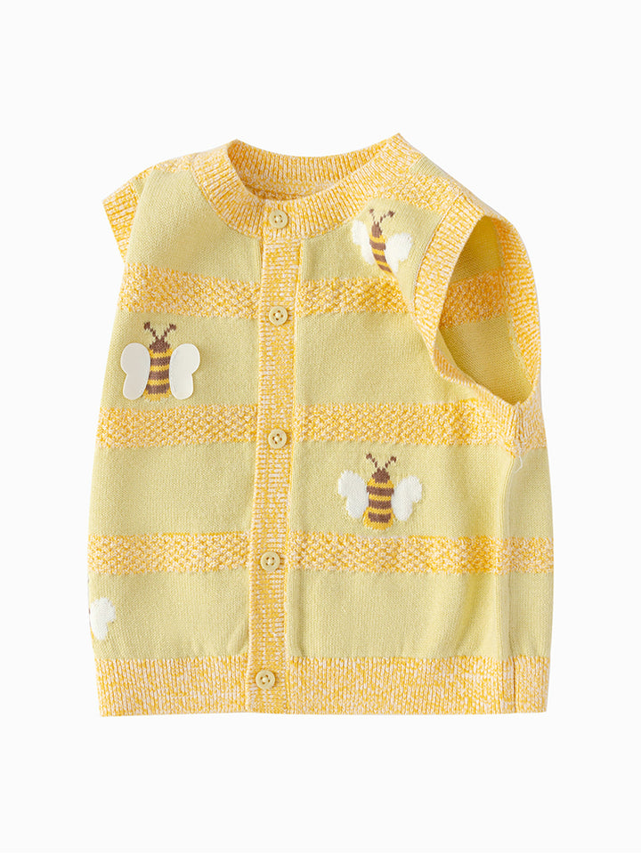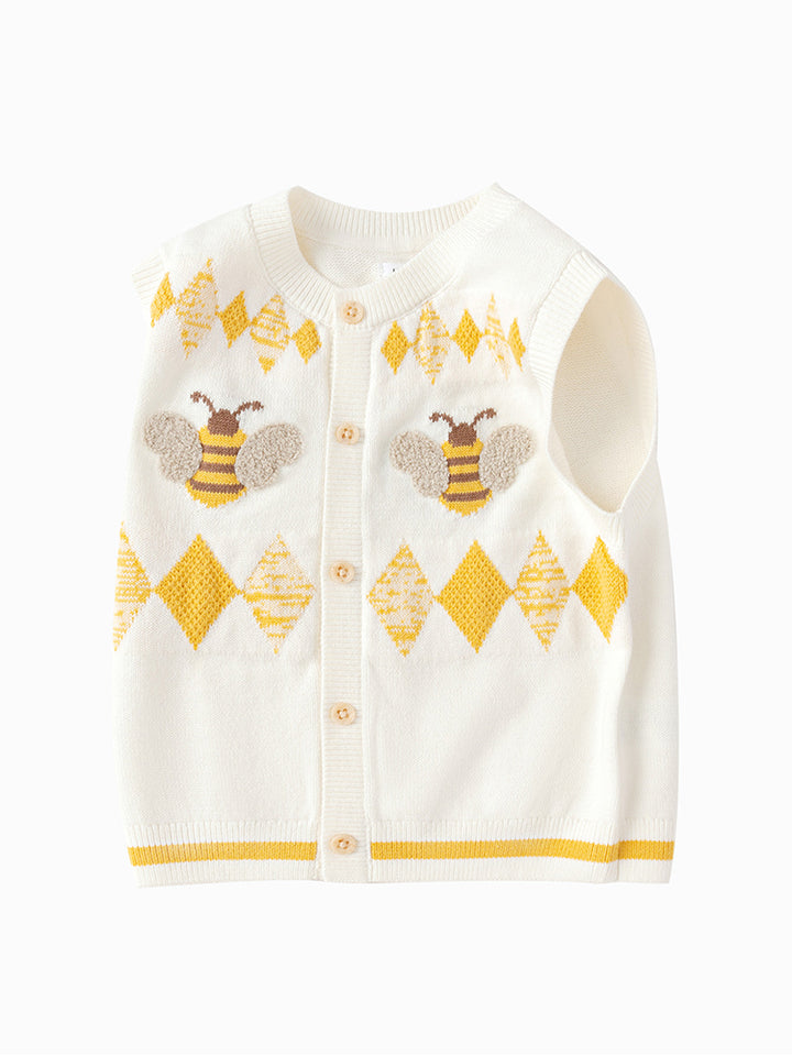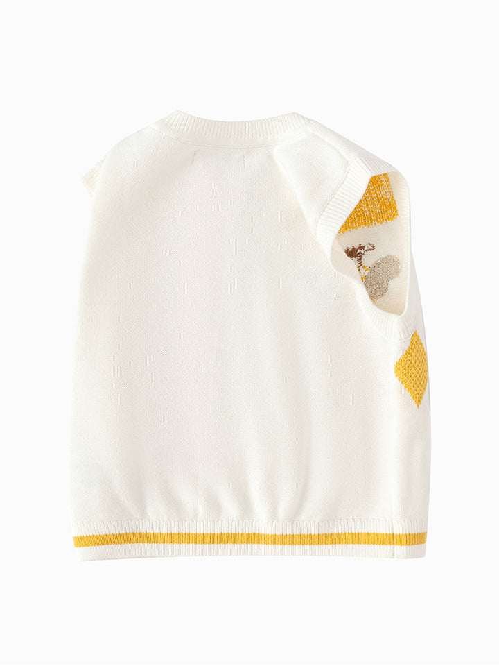 فيست ولادي بدون اكمام بخامة نسيج محبوك مزين بطبع من الجهة الامامية، ياتي بأزرار للإغلاق