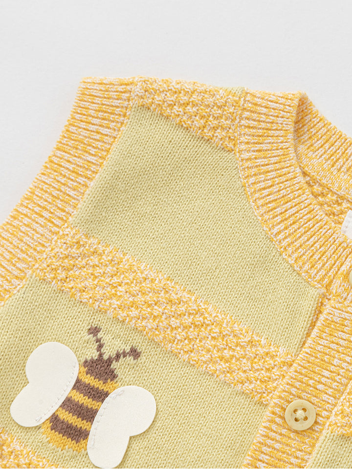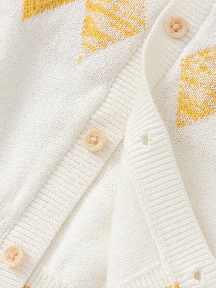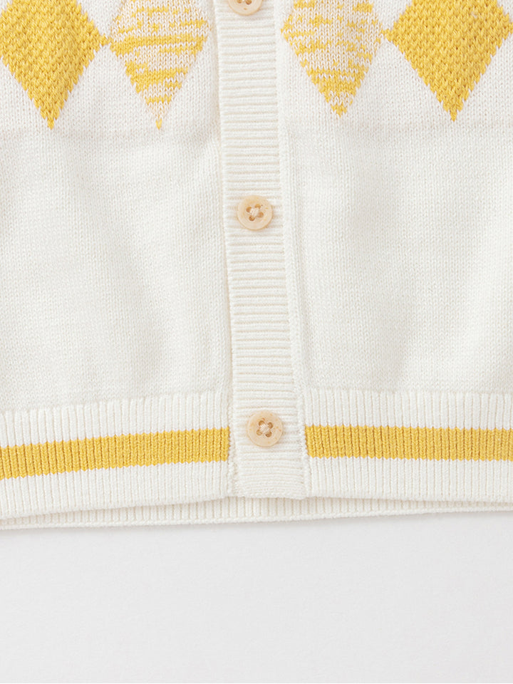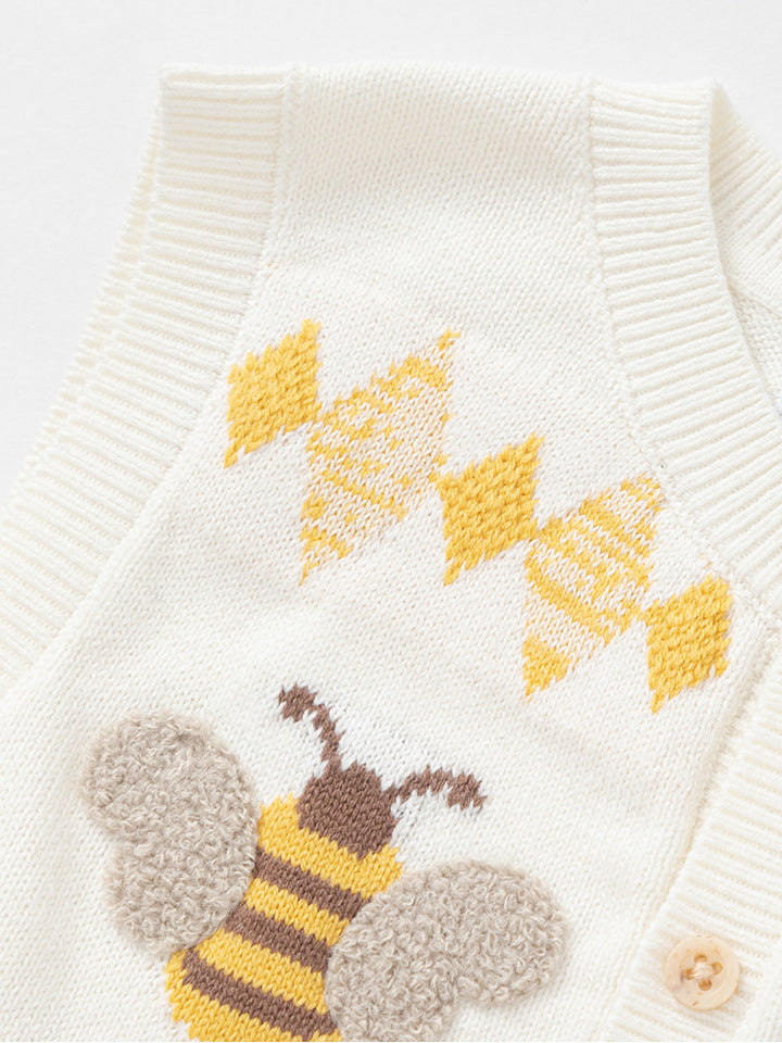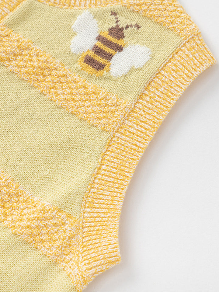 فيست ولادي بدون اكمام بخامة نسيج محبوك مزين بطبع من الجهة الامامية، ياتي بأزرار للإغلاق