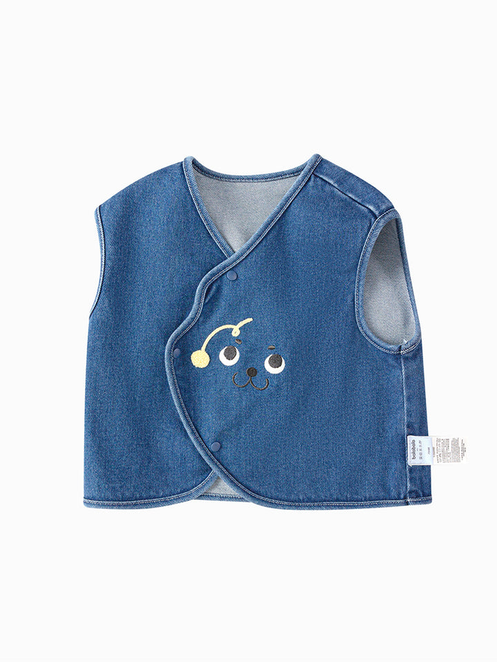 فيست ولادي بدون اكمام مزين بتطريز من الجهة الأمامية، ياتي بأزرار للإغلاق من الجهة الأمامية