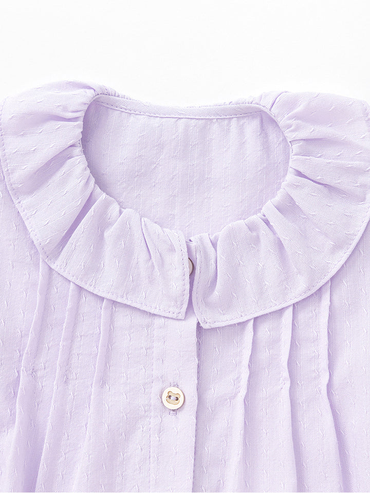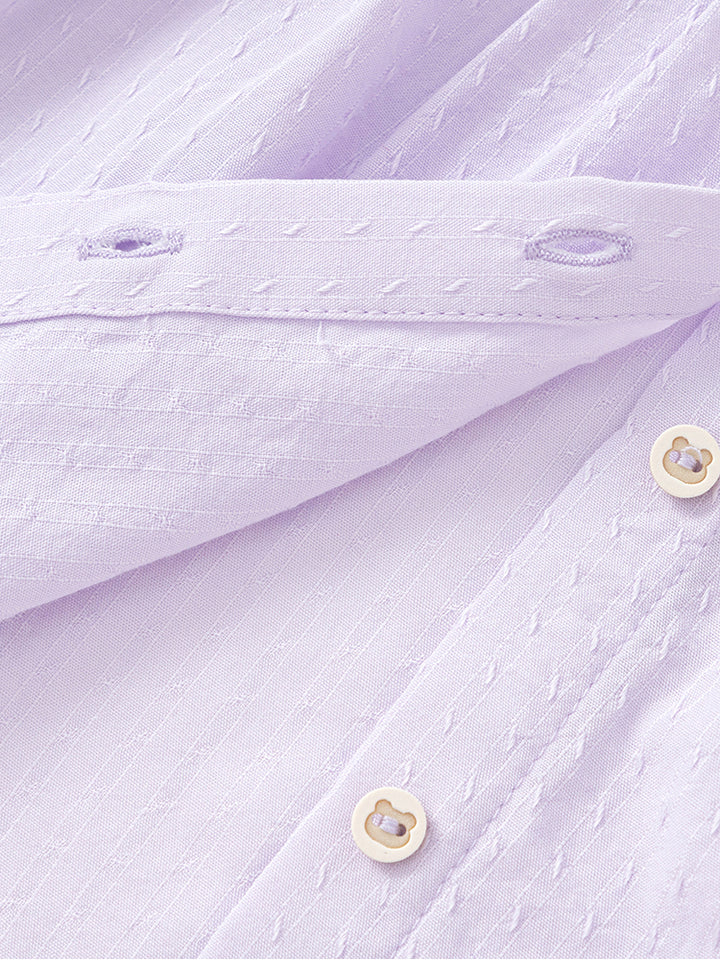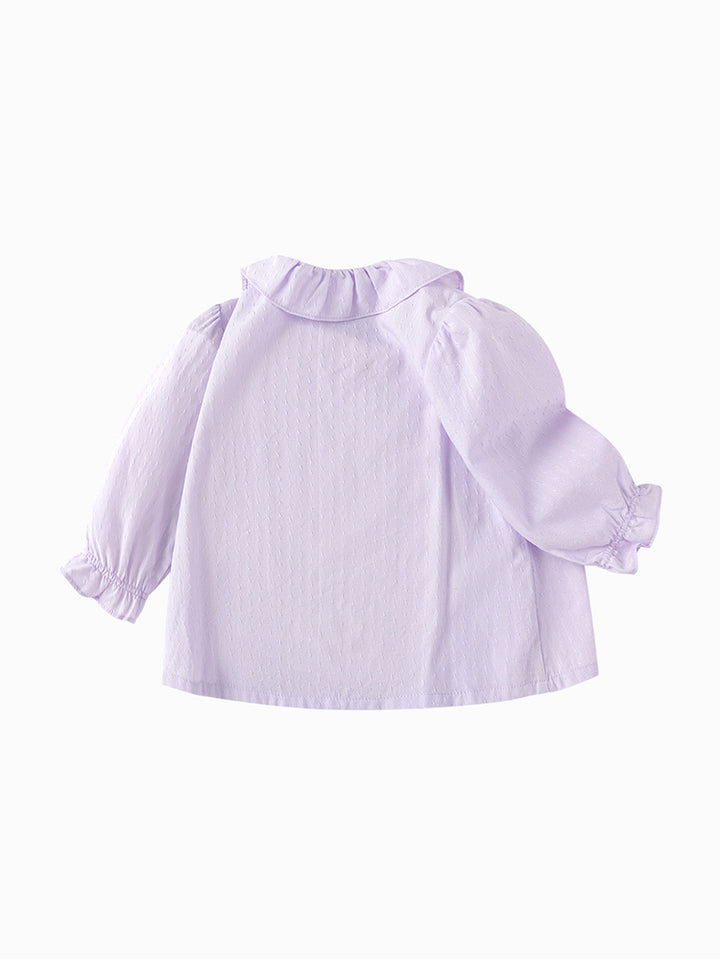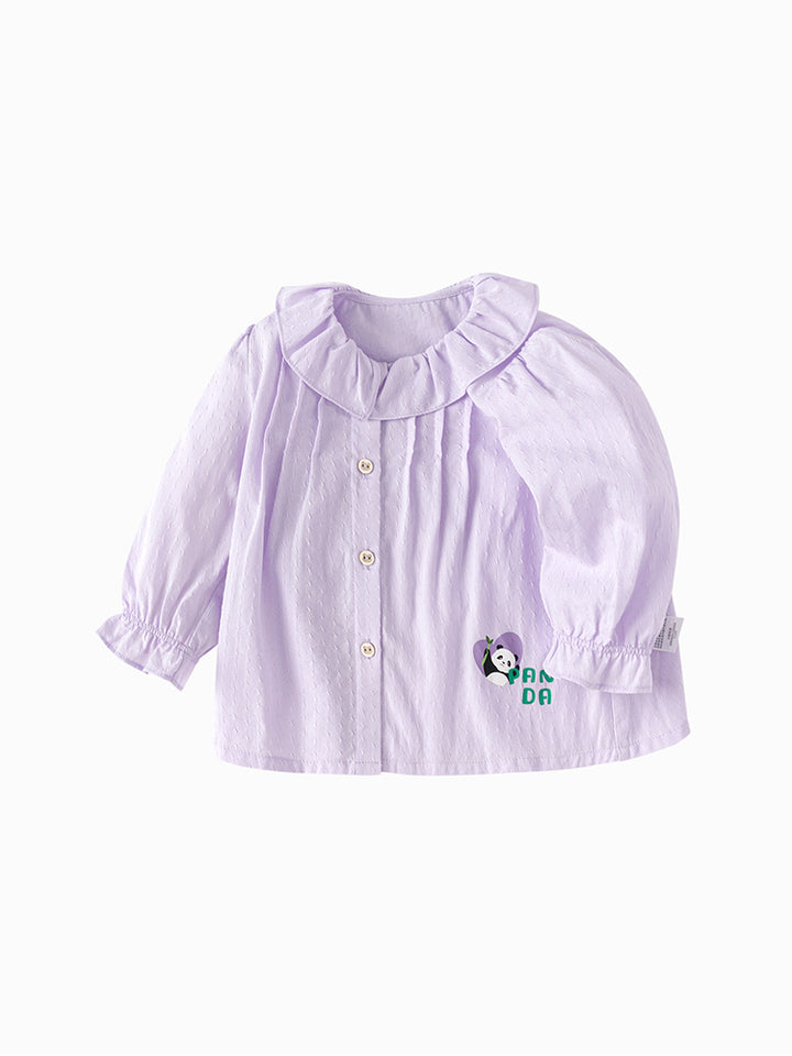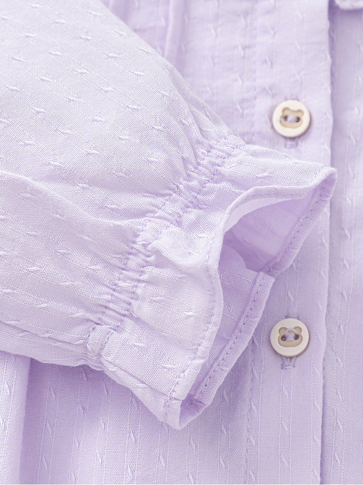 قميص بناتي بأكمام طويلة، مزين بطبعة من الجهة الأمامية، يأتي بأزرار للإغلاق وبياقة مدورة