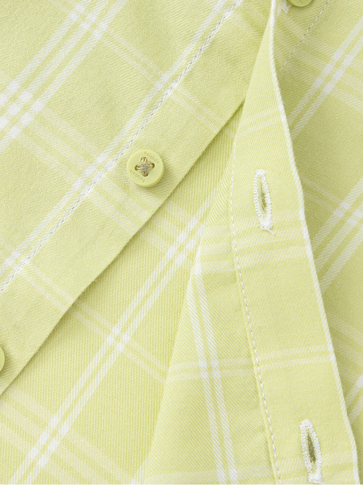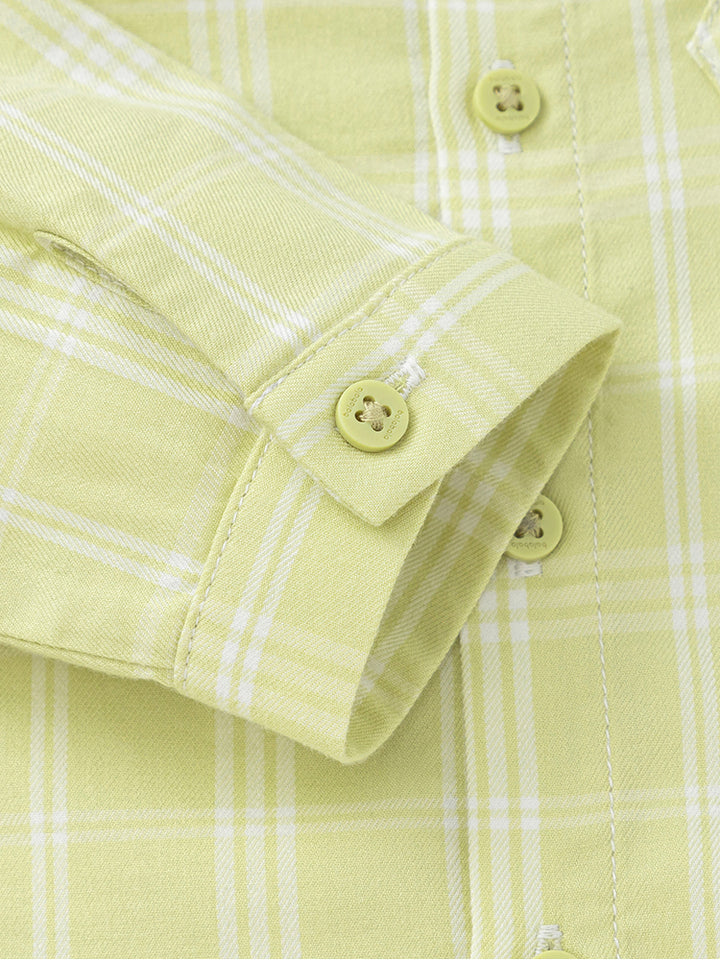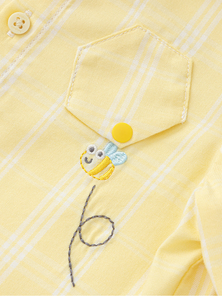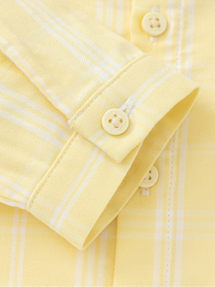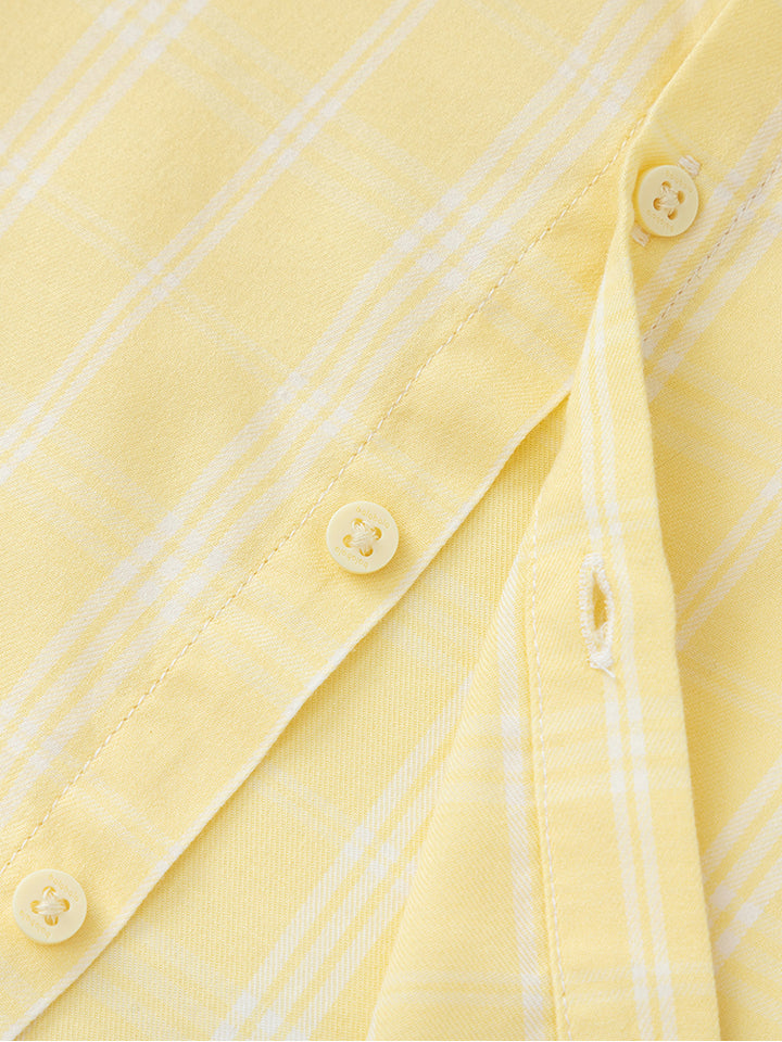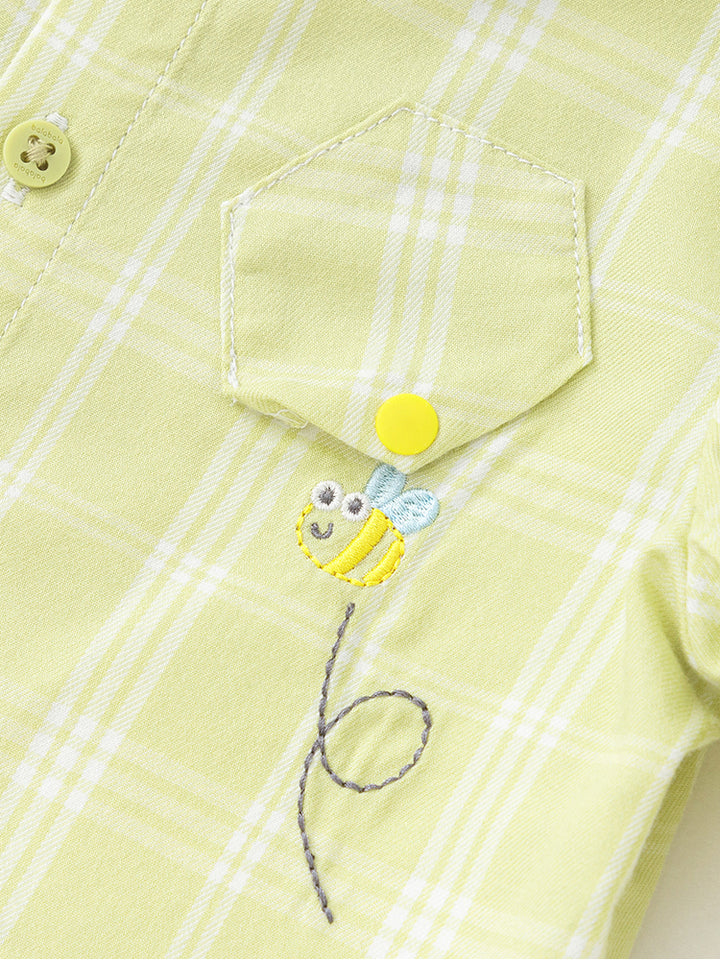 قميص ولادي بأكمام طويلة، مزين بنمط مخطط على كامل التصميم، يأتي بأزرار للإغلاق وبياقة كلاسيكية عادية
