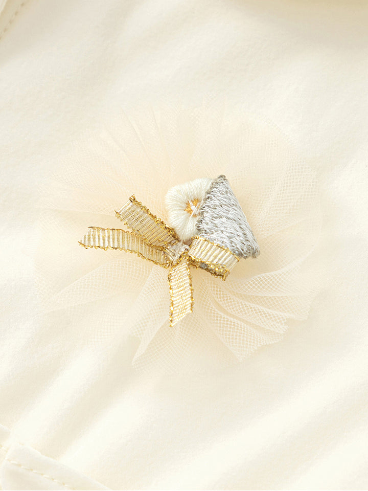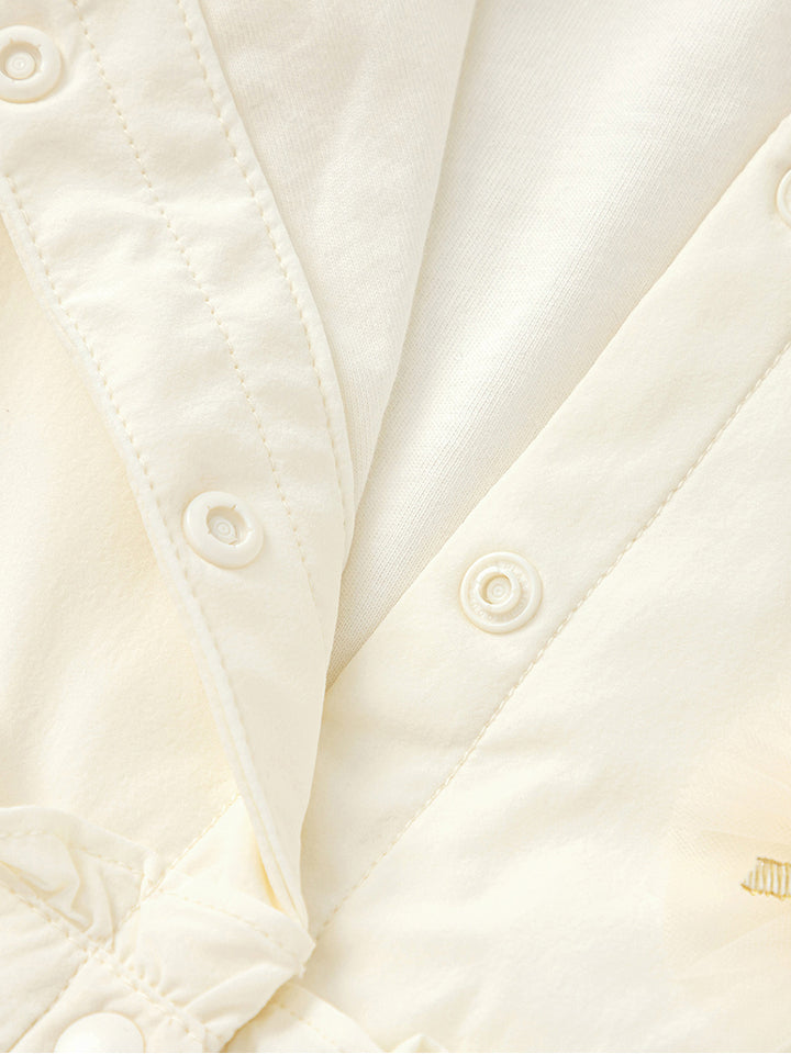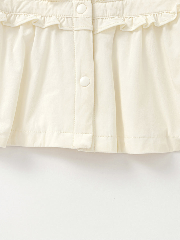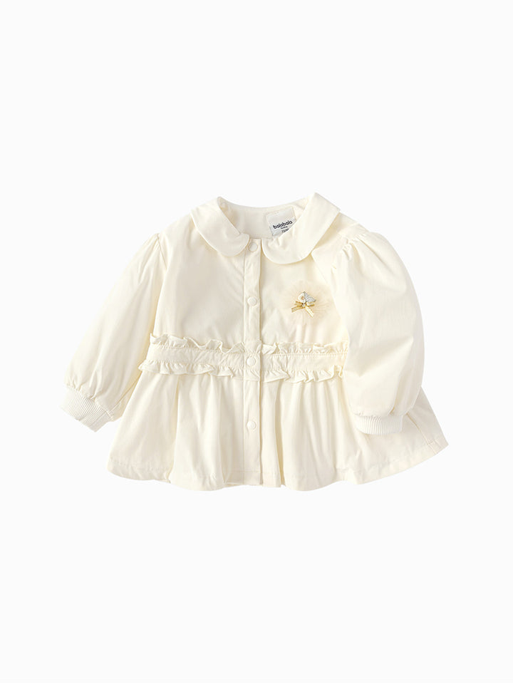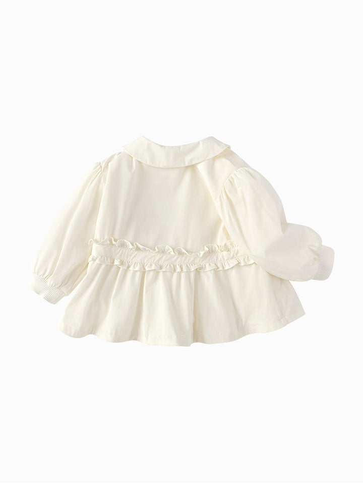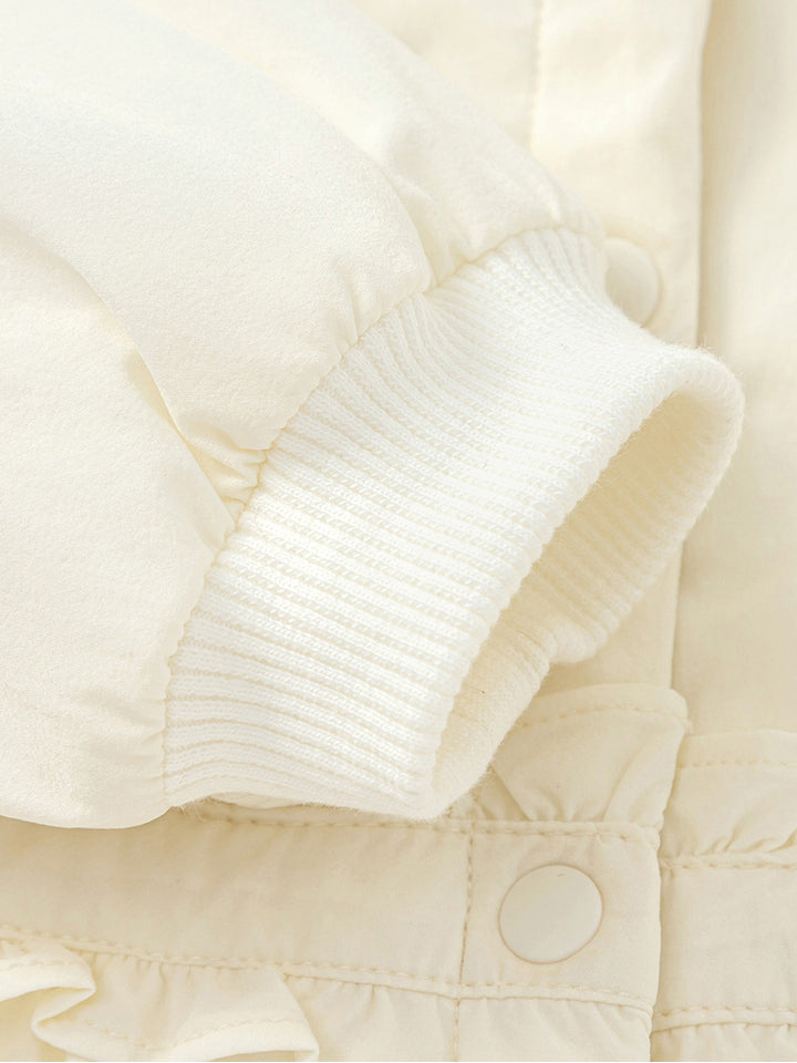 جاكيت بناتي شتوي بأكمام طويلة وبنمط لون موحد، مزين بتفاصيل كشكش ويأتي بأزارار للإغلاق