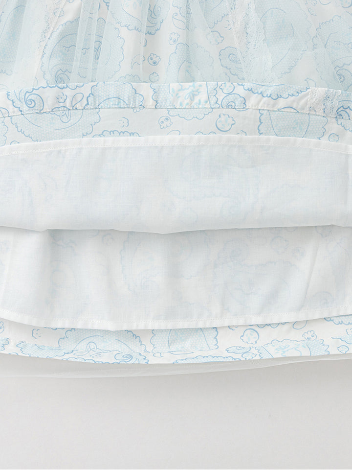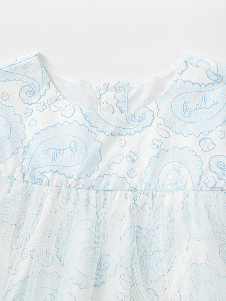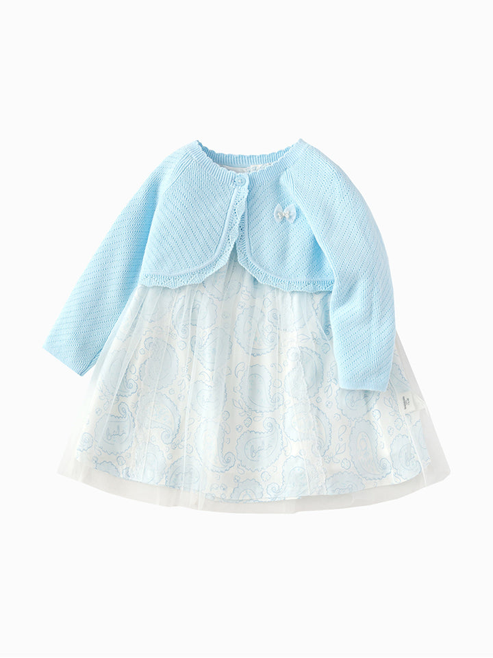 طقم فستان بناتي بأكمام طويلة وبنمط طبعات على كامل التصميم ياتي بأزرار للإغلاق وطبقة كارديغان بنسيج محبوك