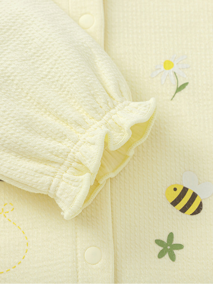 أفرهول بناتي بأكمام طويلة، مزين بتفاصيل طبع، يأتي بأزرار للإغلاق