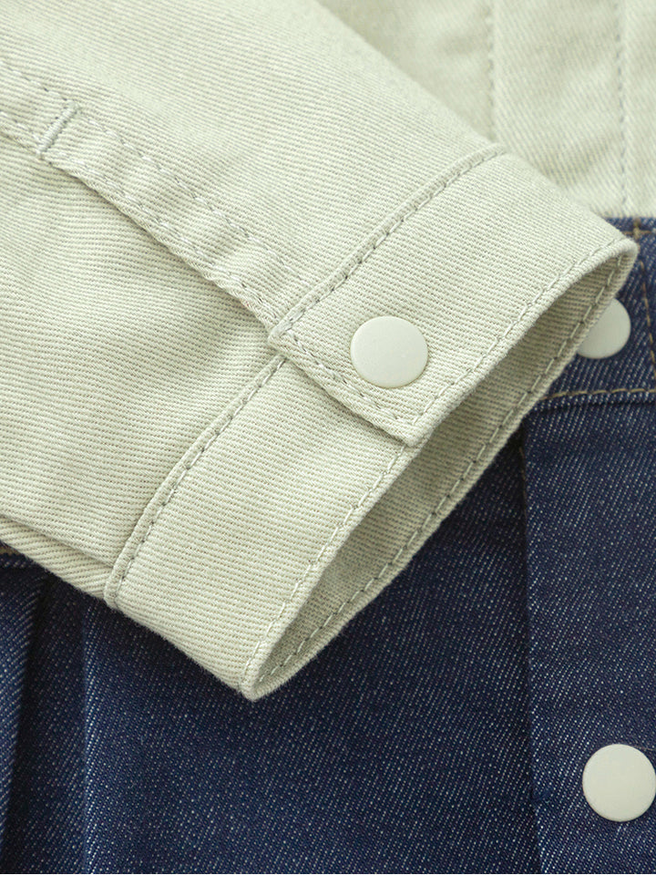 أفرهول ولادي بأكمام طويلة ونمط متباين اللون، مزين بتفاصيل تطريز، يأتي بأزرار للإغلاق