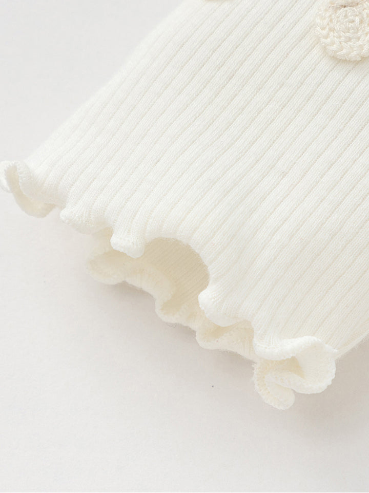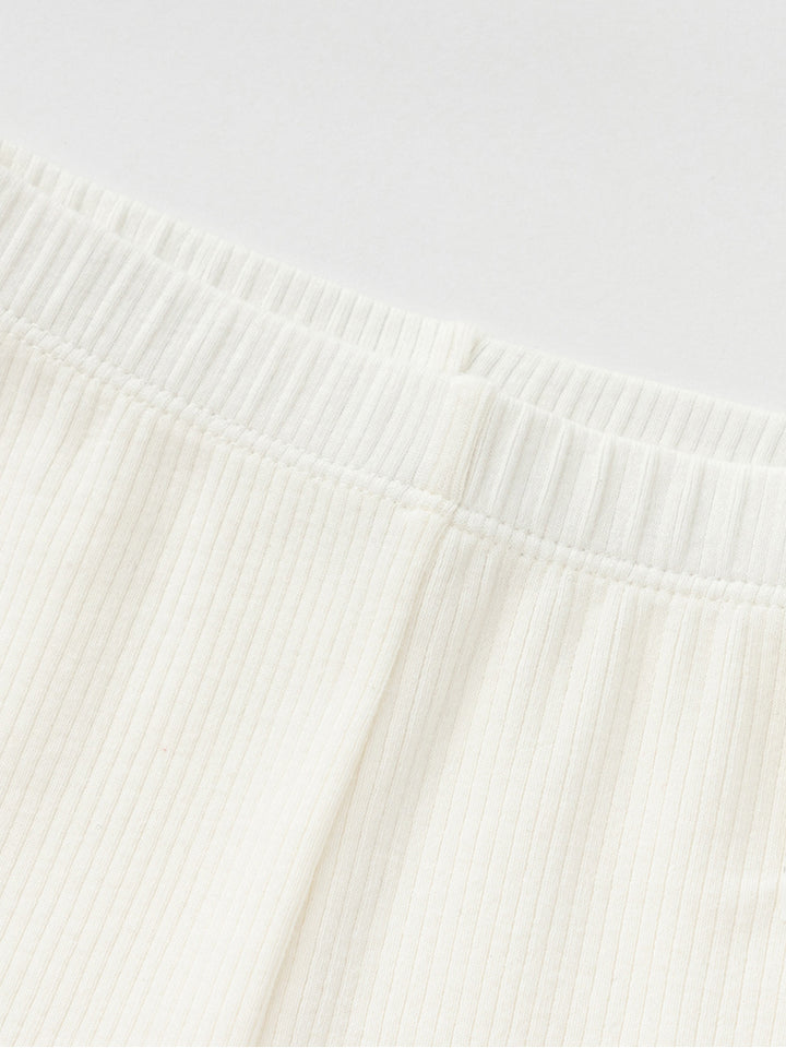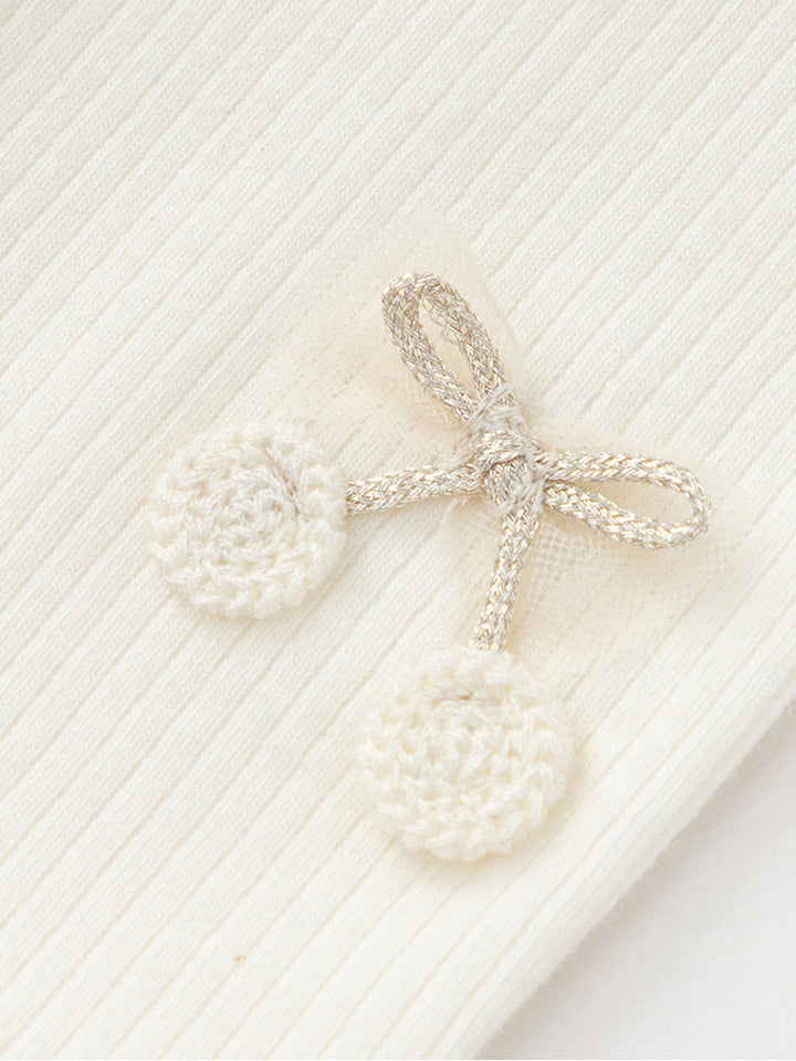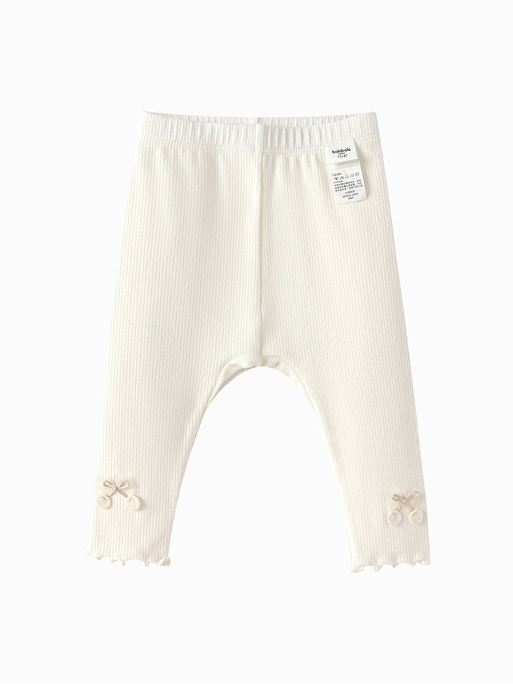 بنطلون ليقنز بناتي مزين بنسيج منقوش وتفاصيل زينة أربطة، يأتي بخصر مطاطي مريح