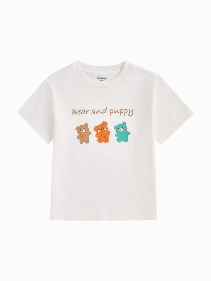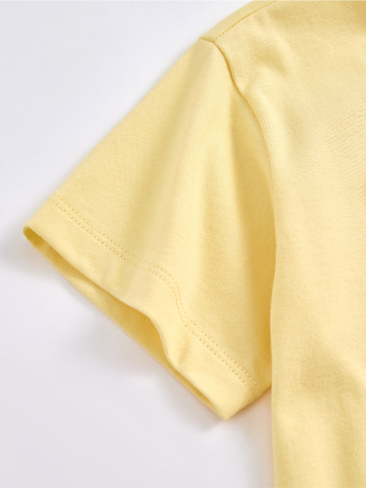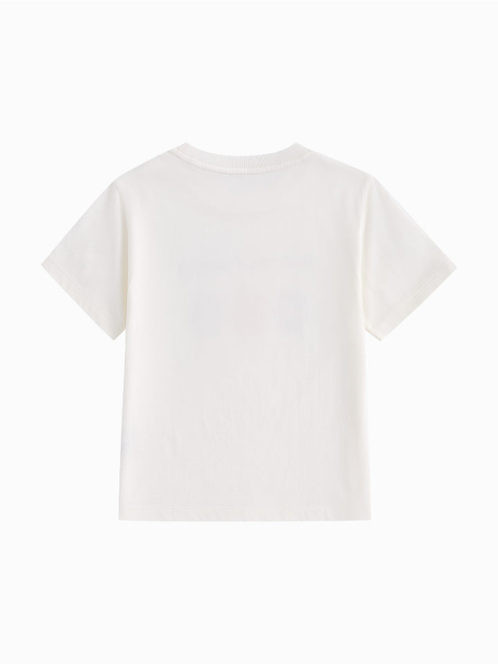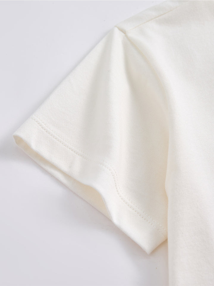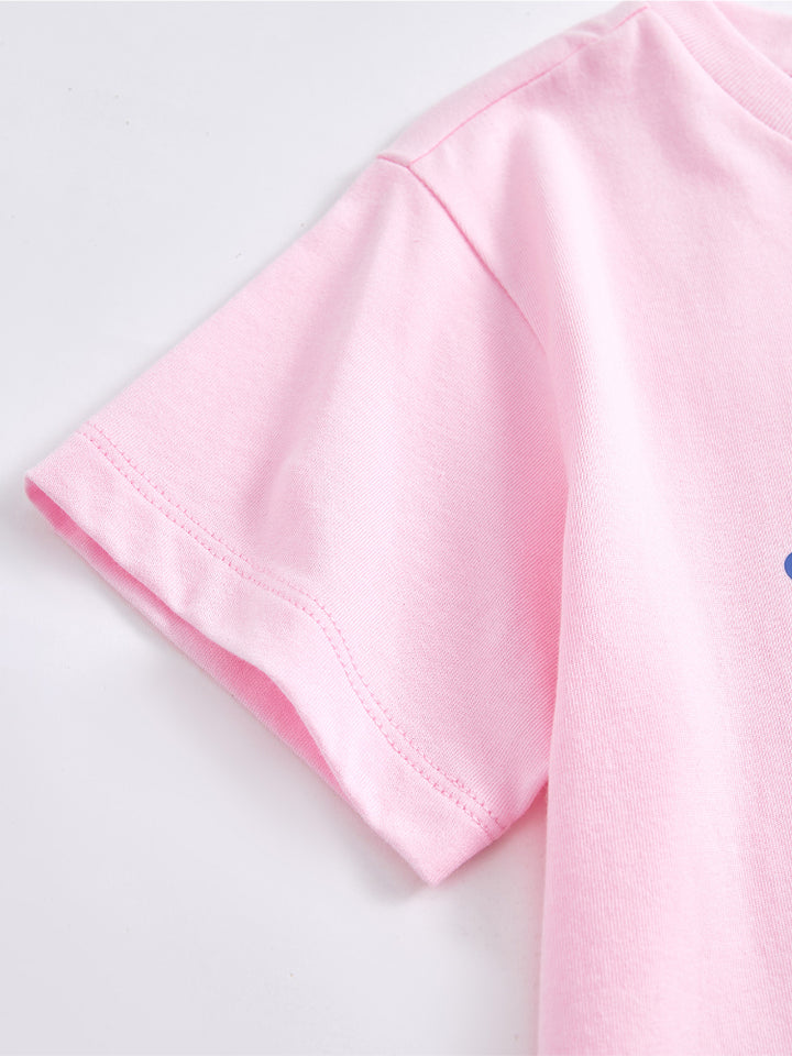 تيشيرت بأكمام قصيرة - طبعة أمامية مع تفاصيل محبوكة وياقة دائرية للجنسين