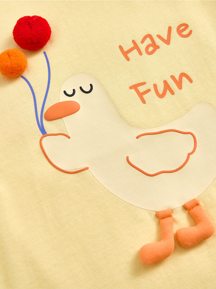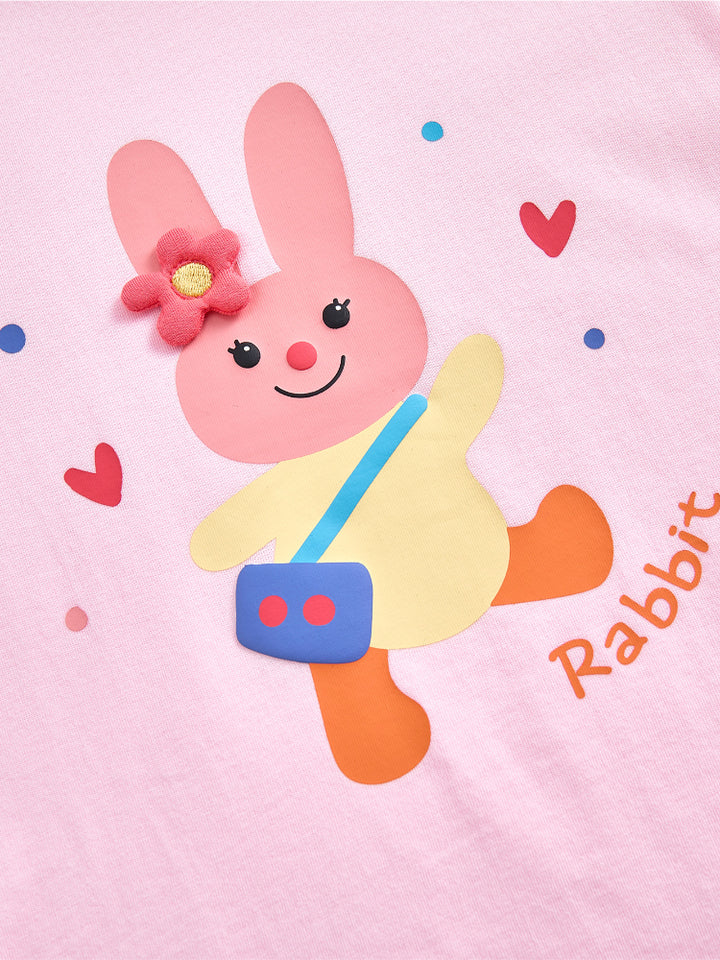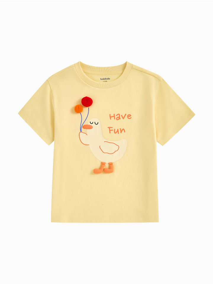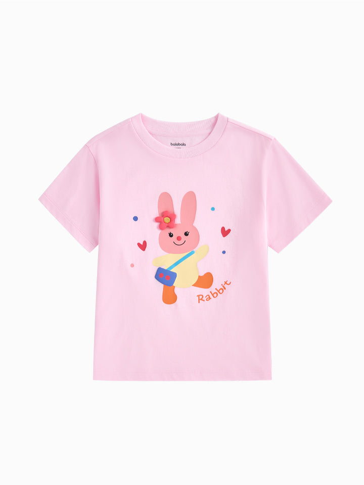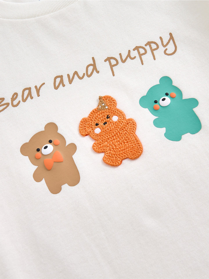تيشيرت بأكمام قصيرة - طبعة أمامية مع تفاصيل محبوكة وياقة دائرية للجنسين