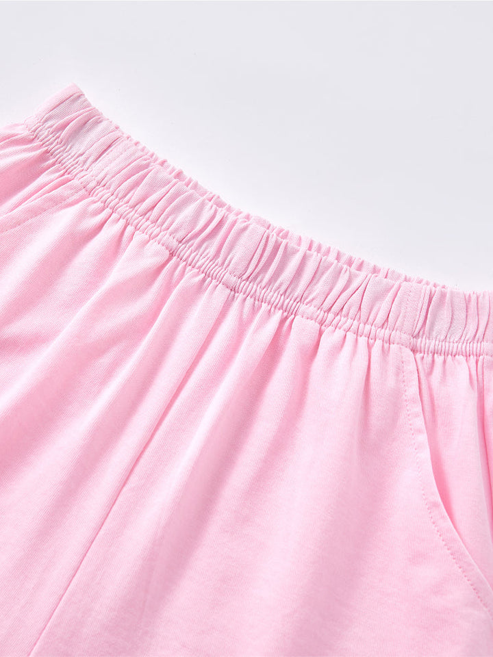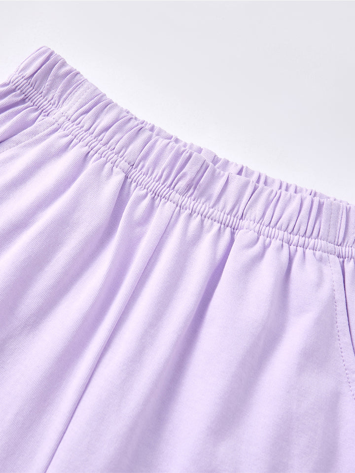 يتكون هذا الطقم اللطيف من تيشيرت بأكمام قصيرة مع طبعة مرحة على الجهة الأمامية وتفاصيل كشكش ناعمة على الأطراف، ويأتي بياقة دائرية مريحة. أما الشورت المرافق فيتميز بطبعة صغيرة على الجهة الأمامية، وحواف مزينة بكشكش، وجيوب جانبية، وخصر مطاطي لمقاس مريح ومرن. مثالي للطلعات اليومية واللعب.