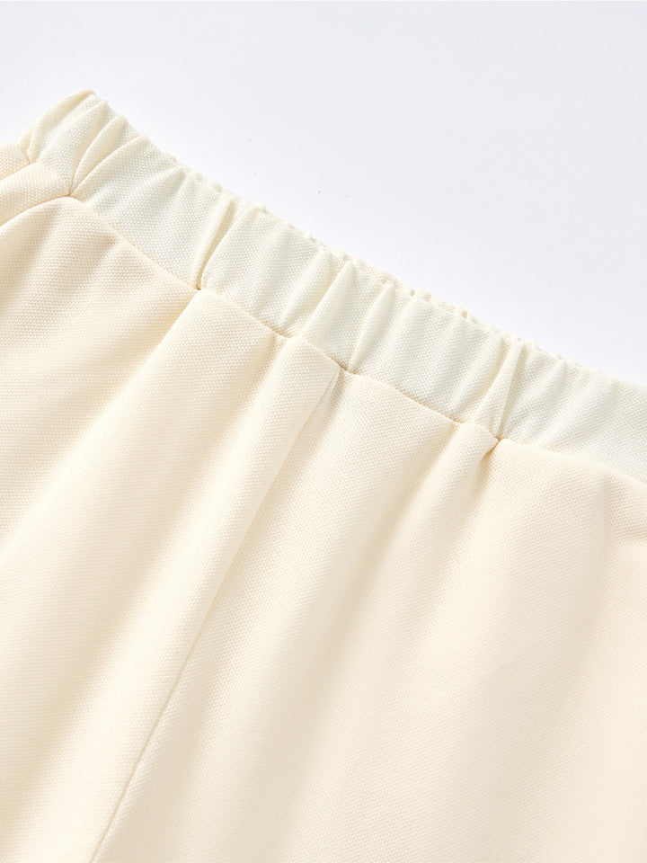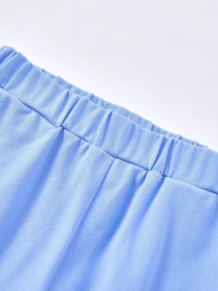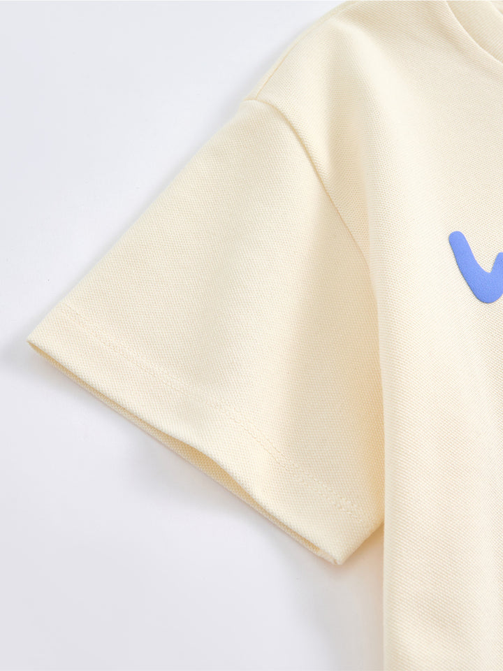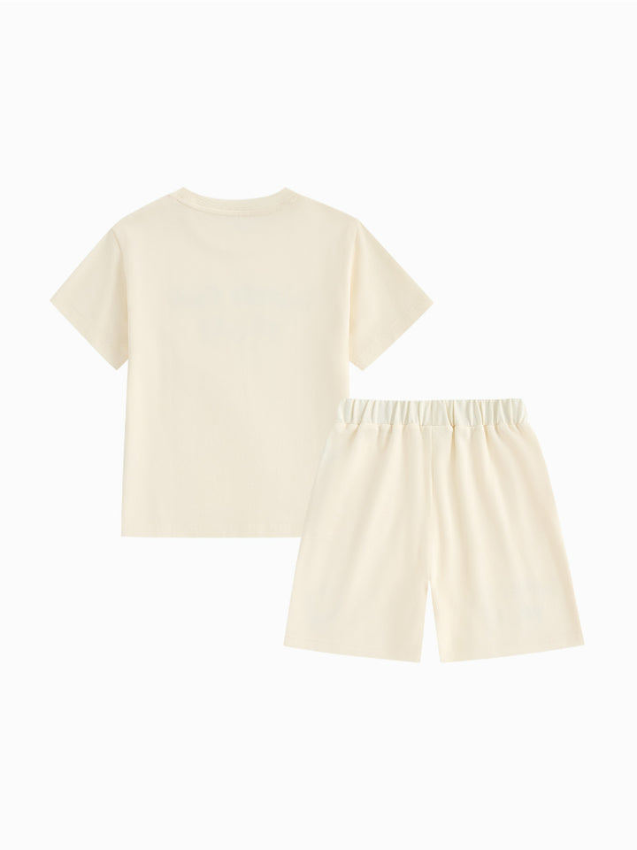 يتكون هذا الطقم المريح من تيشيرت بأكمام قصيرة مزين بطبعة أمامية مرحة وياقة دائرية كلاسيكية. يأتي معه شورت مزود بطبعة صغيرة على الجهة الأمامية، وجيوب جانبية، وخصر مطاطي لمقاس مريح ومرن. مثالي للحركة واللعب اليومي.