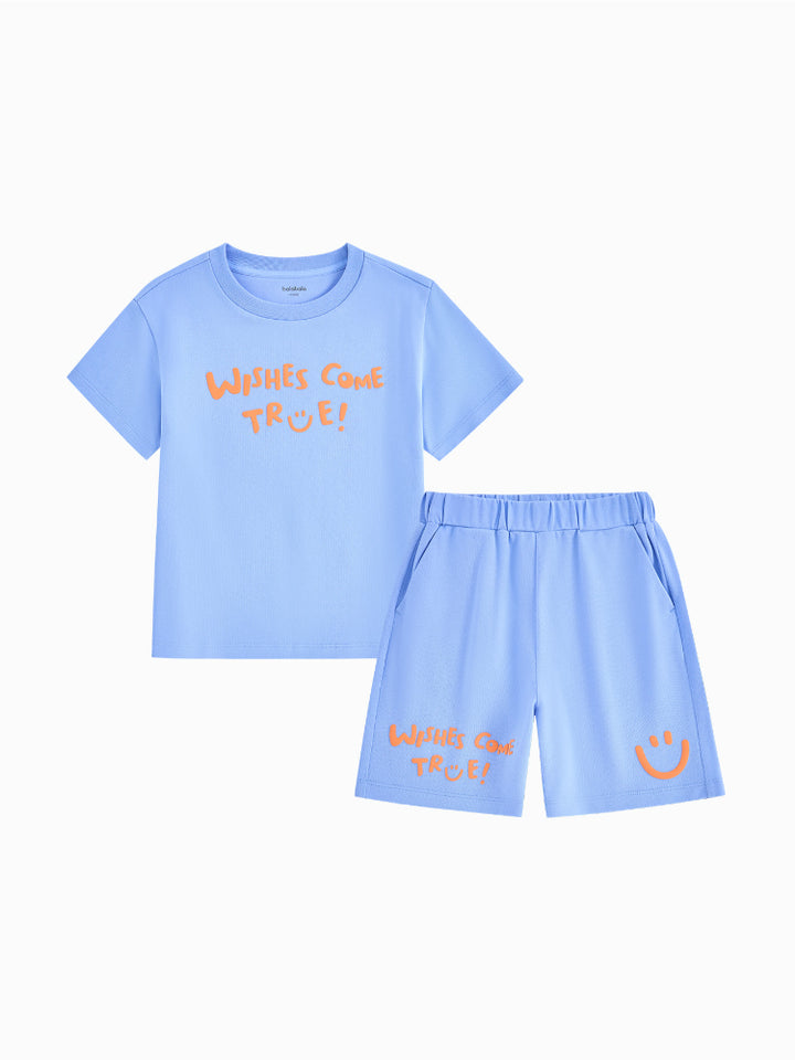 طقم من قطعتين - تيشيرت وشورت بطبعات للأولاد