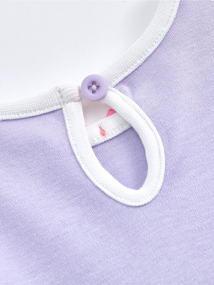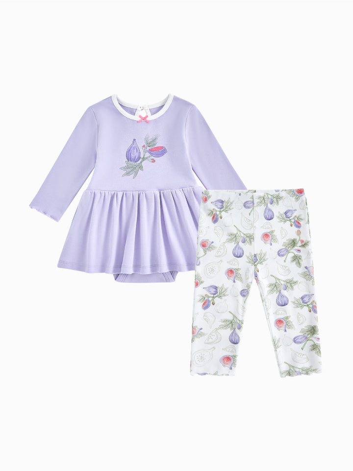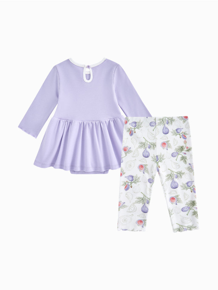 يتكون هذا الطقم اللطيف من بادي بأكمام طويلة مزين بطبعة أمامية ناعمة، بياقة دائرية، وزر خلفي، بالإضافة إلى كباسات في الأسفل لتبديل الحفاض بسهولة. يأتي معه بنطلون مطبوع بخصر مطاطي ناعم لمزيد من الراحة طوال اليوم. مثالي للدفء واللعب اليومي.