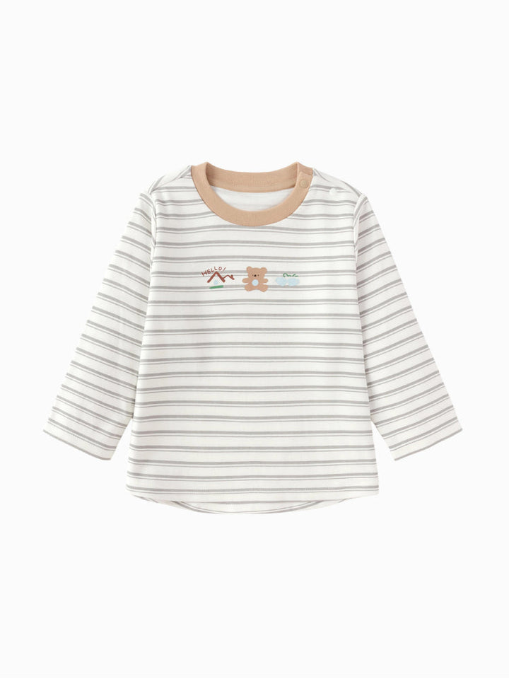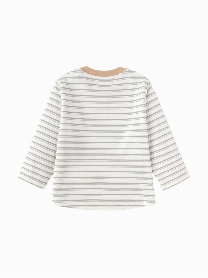 بلوزة ناعمة ومريحة للأطفال بأكمام طويلة وياقة دائرية، مزينة بتصميم أمامي لطيف. مصنوعة من قماش مريح يسمح بالتهوية، مثالية للاستخدام اليومي والارتداء تحت القطع الأخرى. مزودة بأزرار كتف لتسهيل اللبس والخلع.