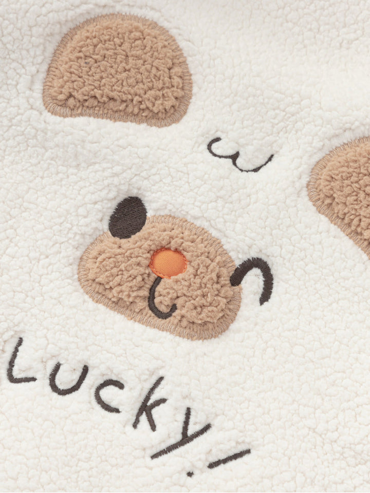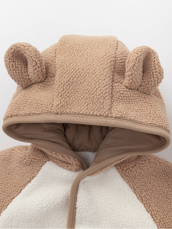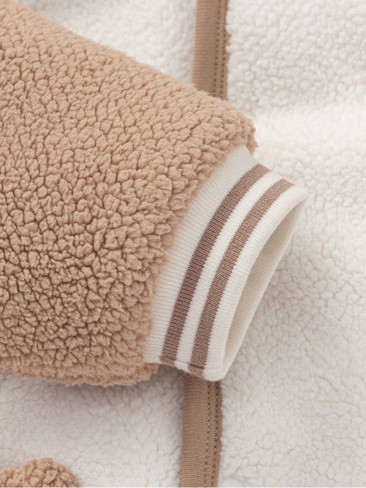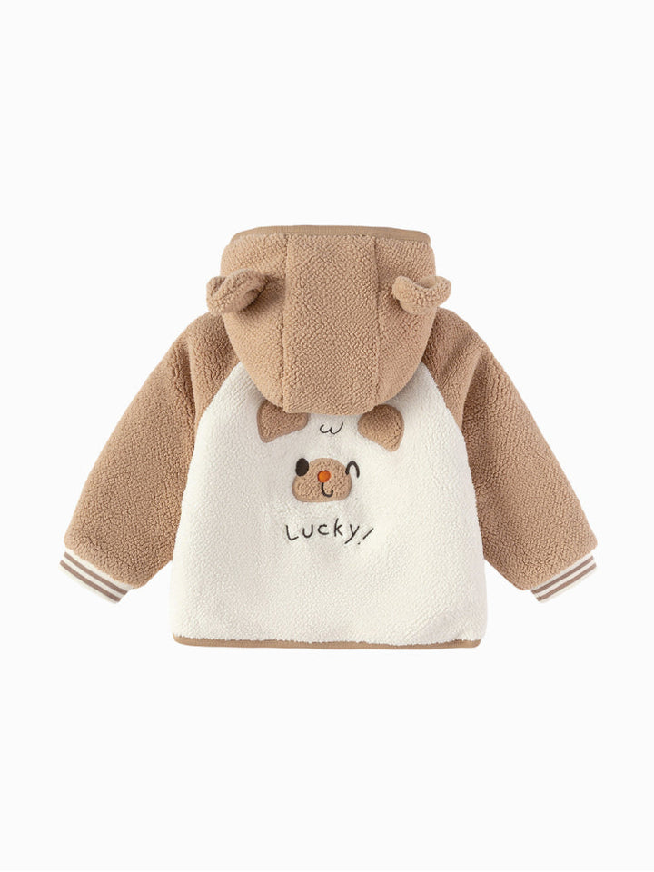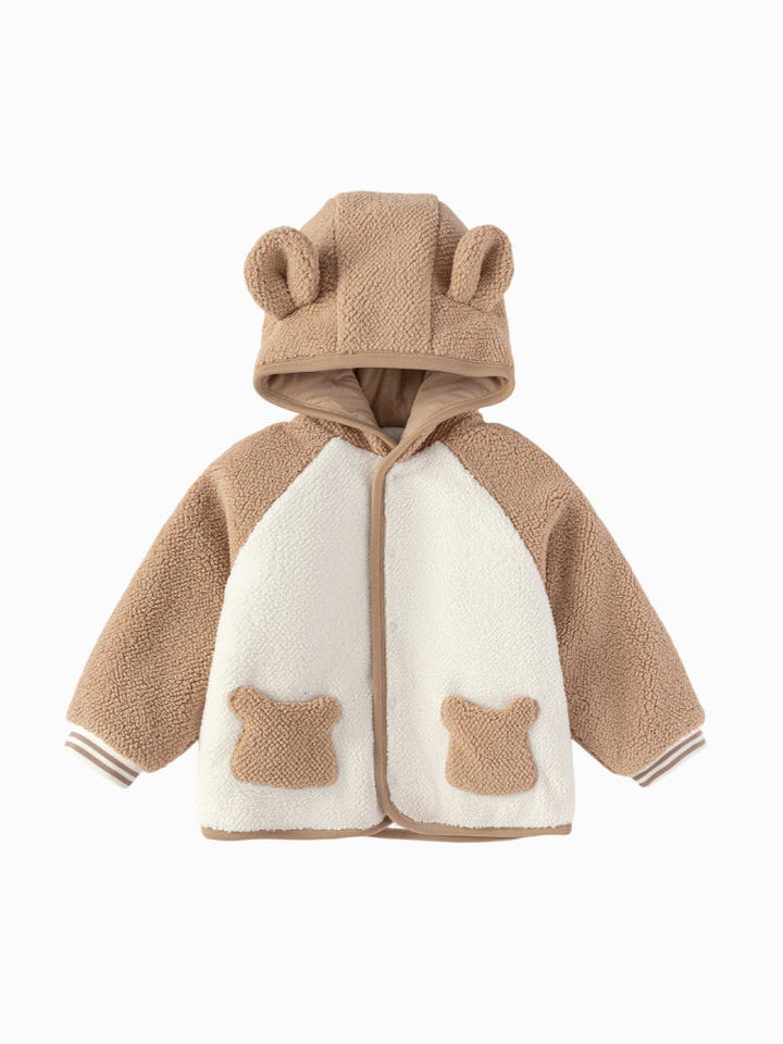 جاكيت شتوي دافئ للأطفال بخامة فرو ناعمة، مزود بقبعة مع أذنين بارزتين لإطلالة مرحة. يتميز بأكمام طويلة بحواف مطاطية، وجيوب أمامية بشكل لطيف، مع تطريز خلفي يضفي لمسة ممتعة. مثالي للمشاوير اليومية في الأجواء الباردة.