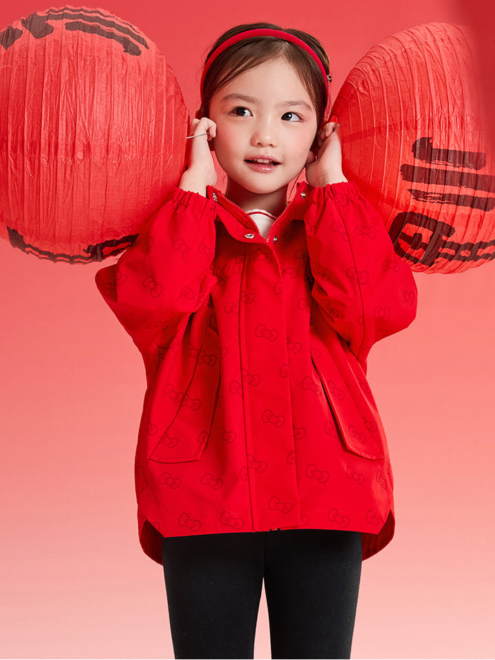 جاكيت بأكمام طويلة مزين برقعة من االجهة الأمامية، يأتي بجيوب أمامية، سحاب أمامي للإغلاق وبياقة هودي متصلة