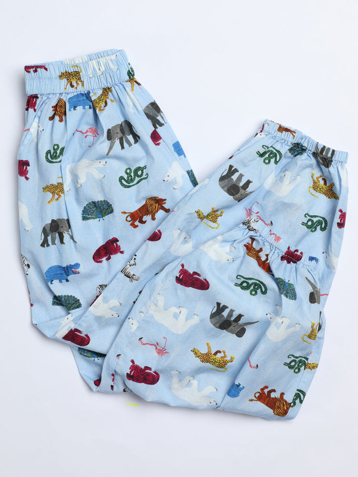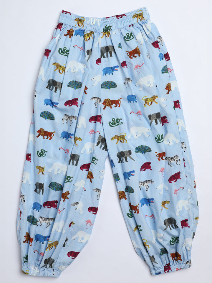 بنطلون عملي للأطفال بتصميم واسع مريح مع خصر وأطراف مطاطية لثبات أفضل. مزين بطبعات مرحة تغطي كامل التصميم، مثالي للراحة اليومية وأوقات اللعب.